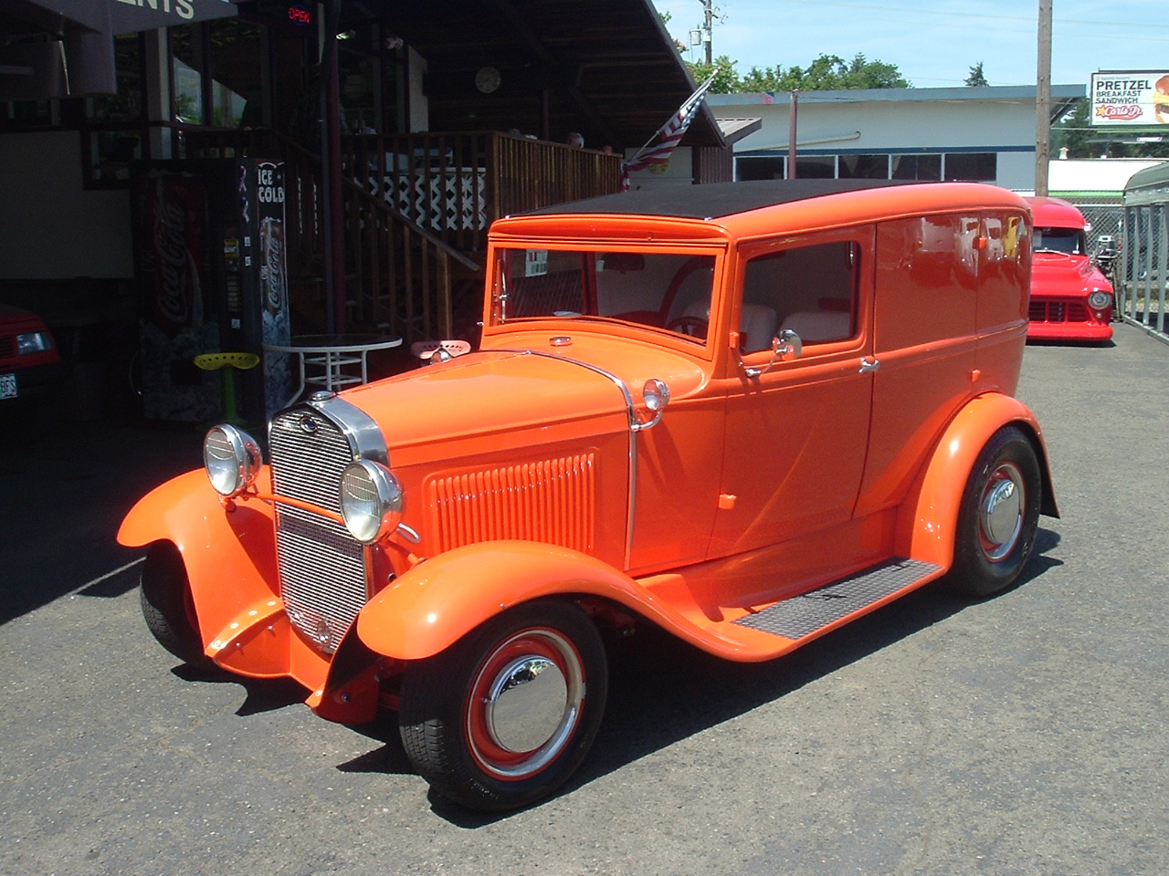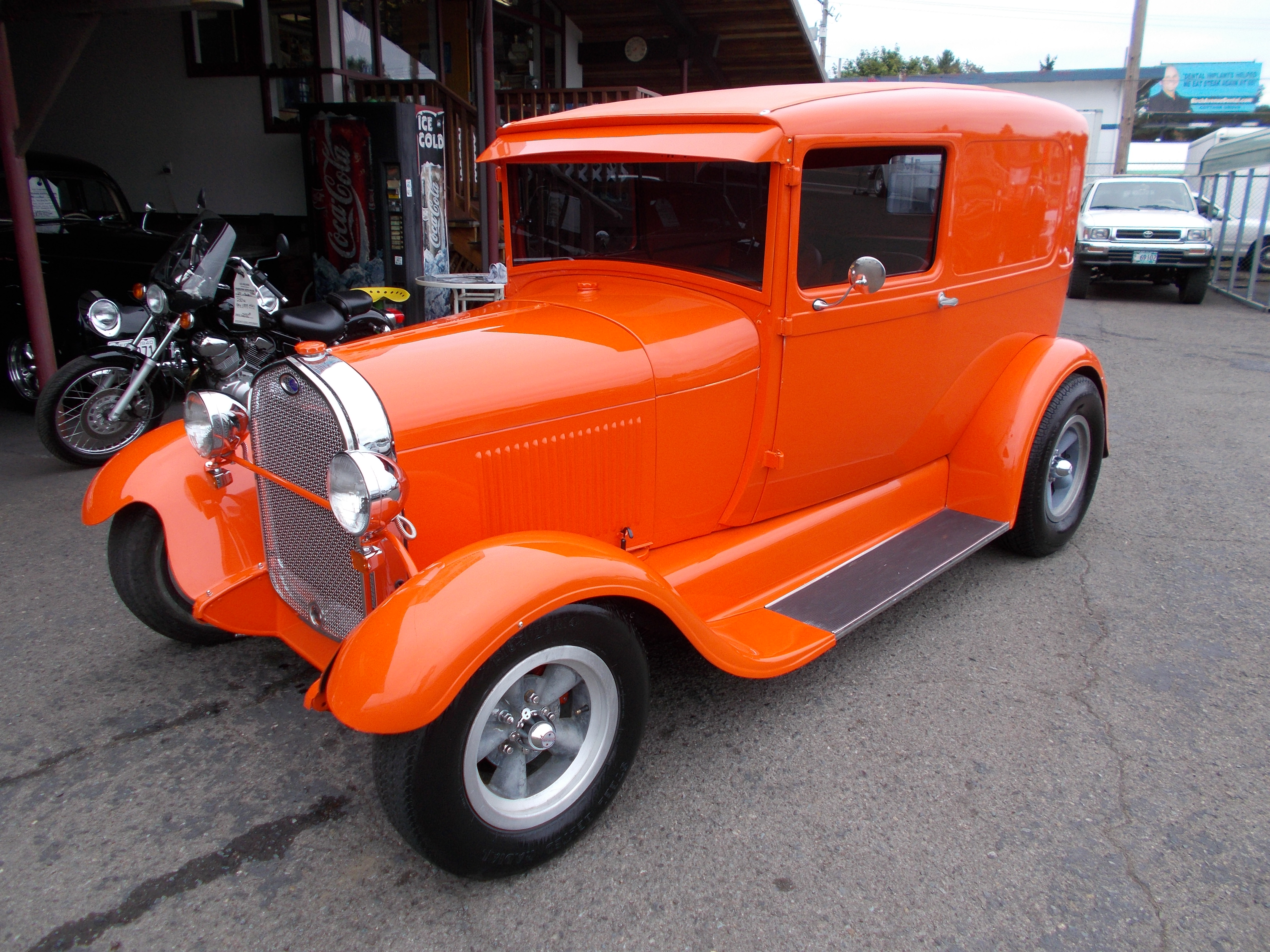 1931 Ford Model-A All steel Slant window Street Rod. Murry body. Custom 4dr. built to look like sedan Delivery. Rebuilt 302 V-8 with 1970 Cobra Heads and high lift cam. (have specs) New on motor - oil pan, timing cover, intake, 750 carb, Alt, fan, Harmonic balancer, Fly wheel, Starter, Dist and wires, Water pump. all with under 300 miles. C-4 automatic trans. Original frame boxed. 4" drop I Beam axle w/Disc brakes. Rear end is Ford 8" w/4bar & coil overs, gear Ratio is 3:78. A new 32 gas tank was installed. Body is all steel and rust free. Paint is single stage Polyurethane. Body is Murry 31 four door slant window with back windows filled in, rear exterior door handles removed but they still open from inside the car. New - Interior, Top, Glass, Hood, Front splash apron, Cowl lights w/turn signals, Wiring Harness, exhaust, Steering wheel, Master cyl. brakes. Super nice driving Custom Model-A ! 278 miles since completed. # A-1966 $34,500 SOLD!