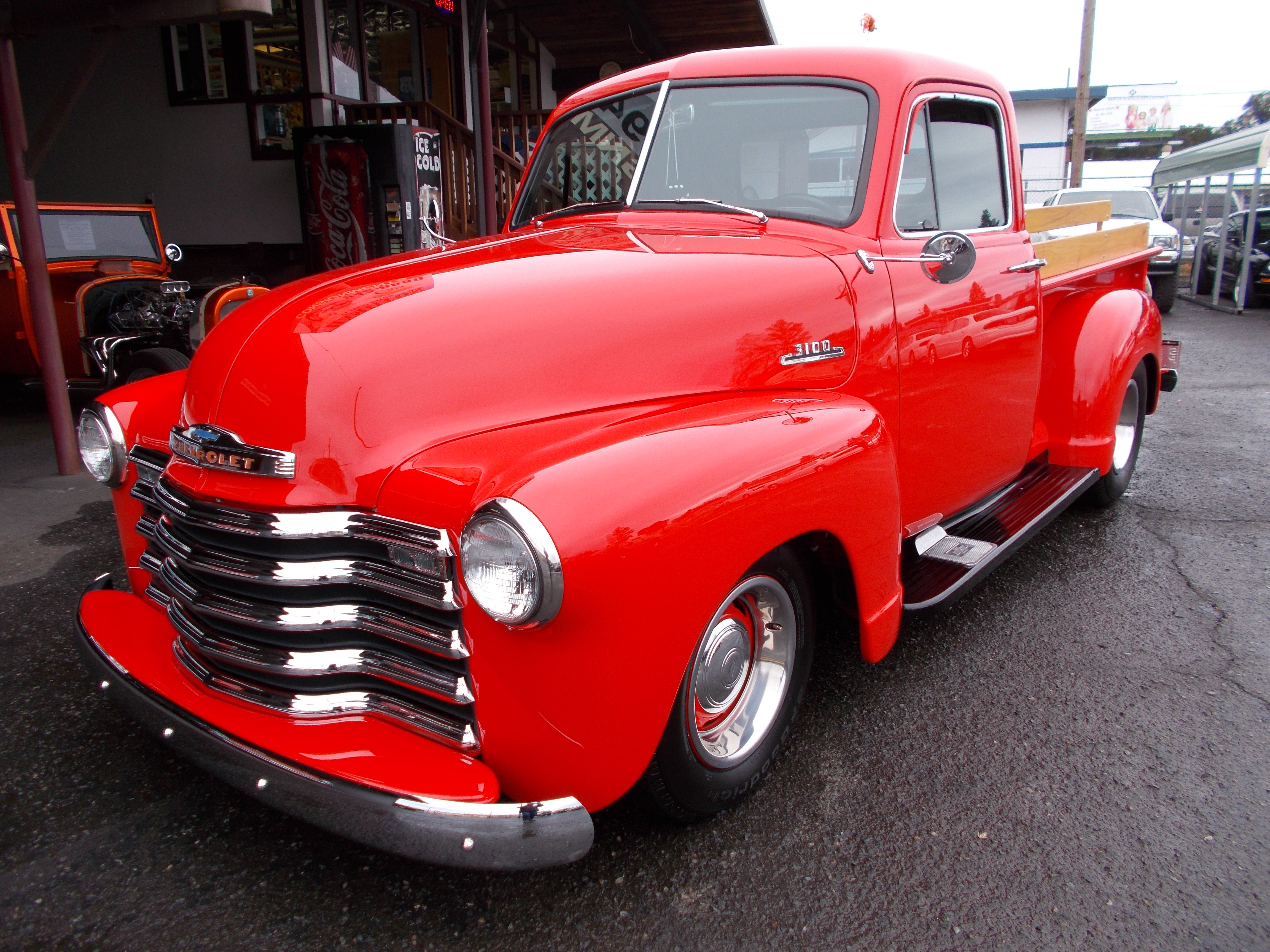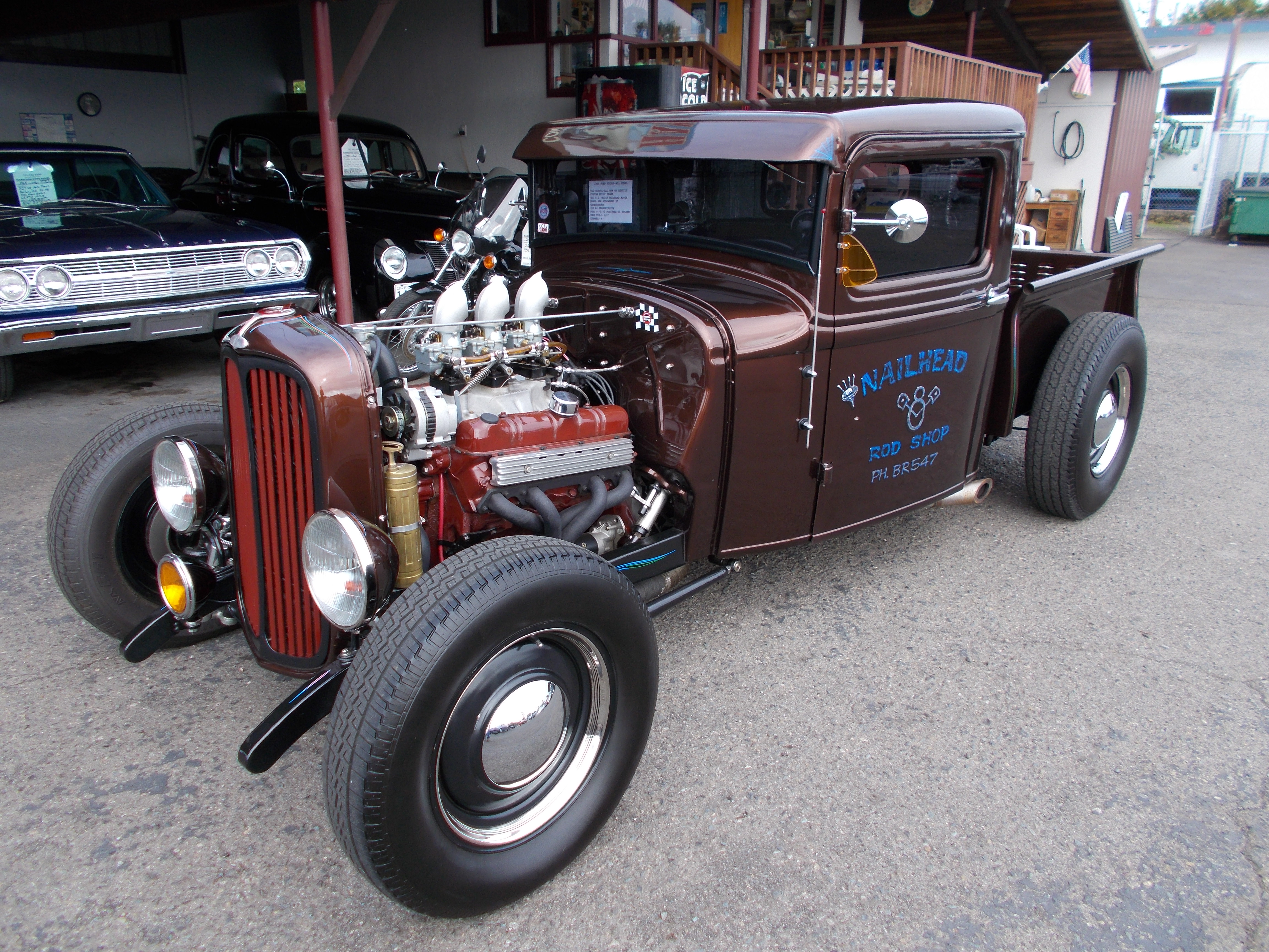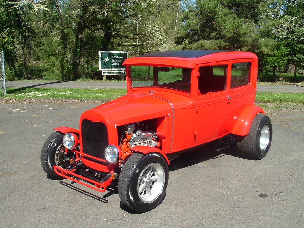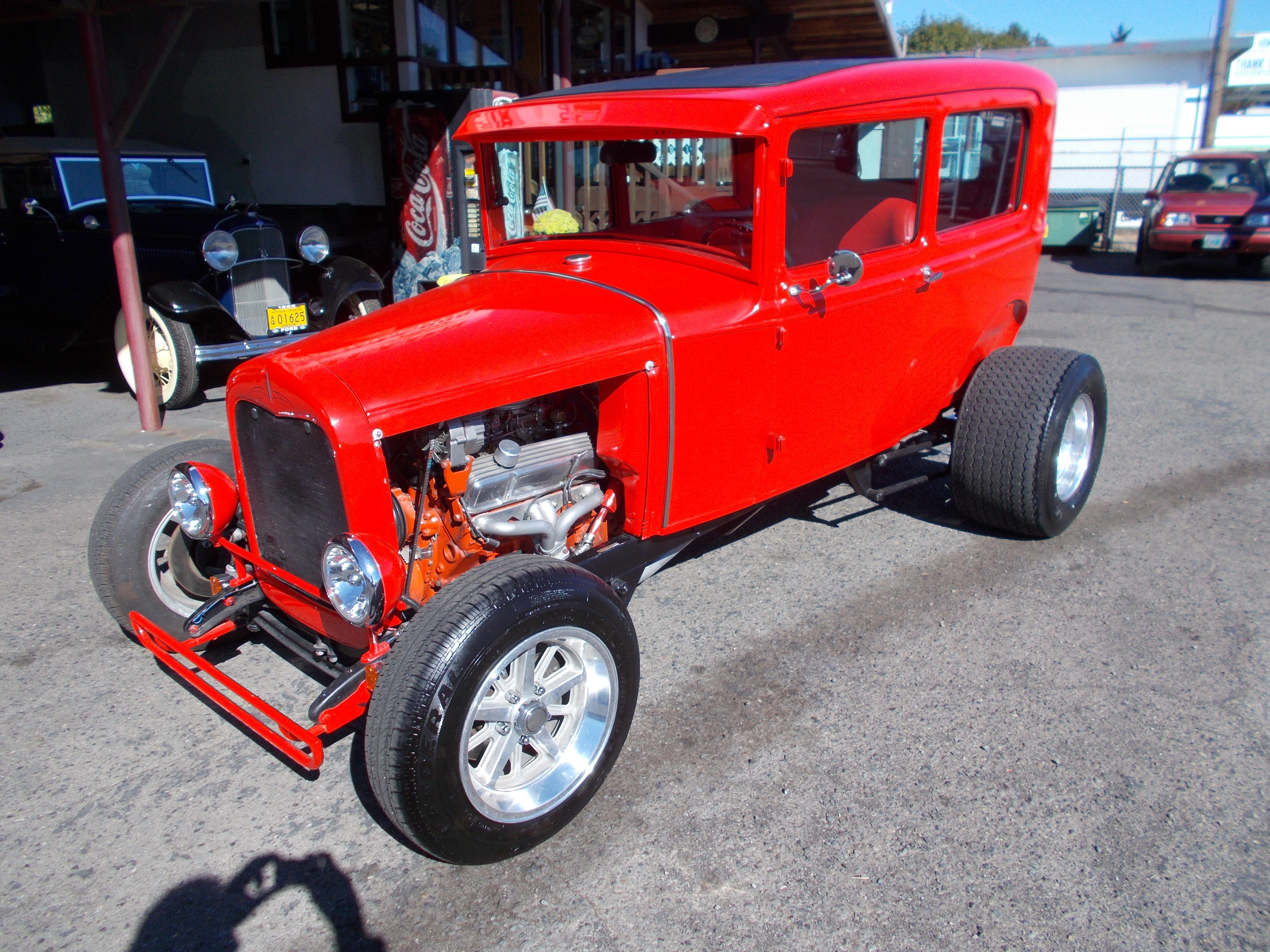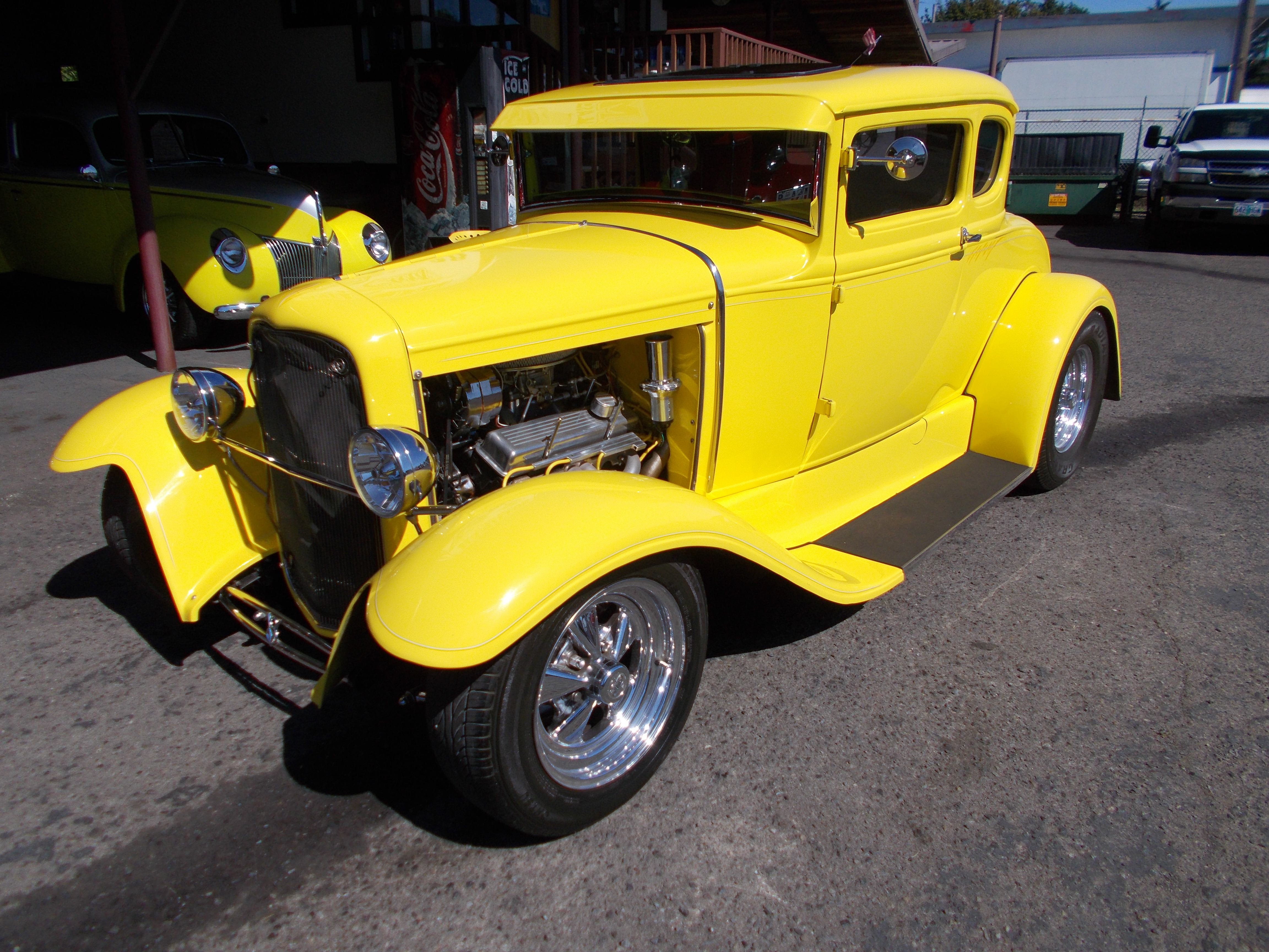 This is how the 1931 Model-A Sports Coupe below came back. 305 V-8, Turbo 400 automatic. 8' rear end with Coil over's and 4 bar. 6' drop front axle with disc brakes. Custom built Model-A frame. Paint and interior left the same. # A-1944 $21,500 SOLD!