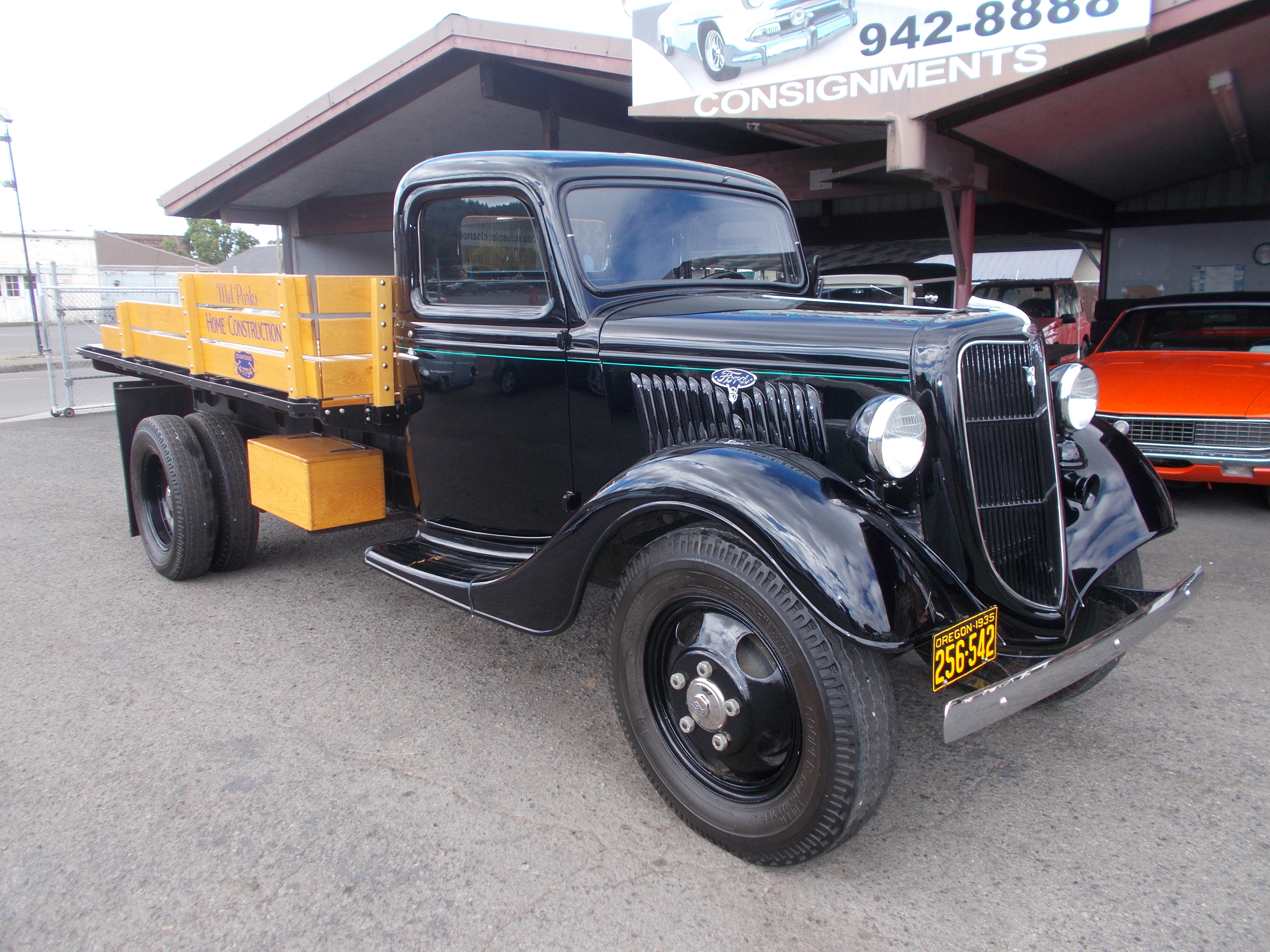 1935 Ford 1 1/2 Ton Flatbed Mod-51. Flat head V-8 w/original running gear, 4spd trans. This is and all original steel truck. The complete restoration was finished in 1995 and truck has been ran 2,281 miles since completion. Truck pretty much still looks fresh. # B-1828 $24,900 SOLD!