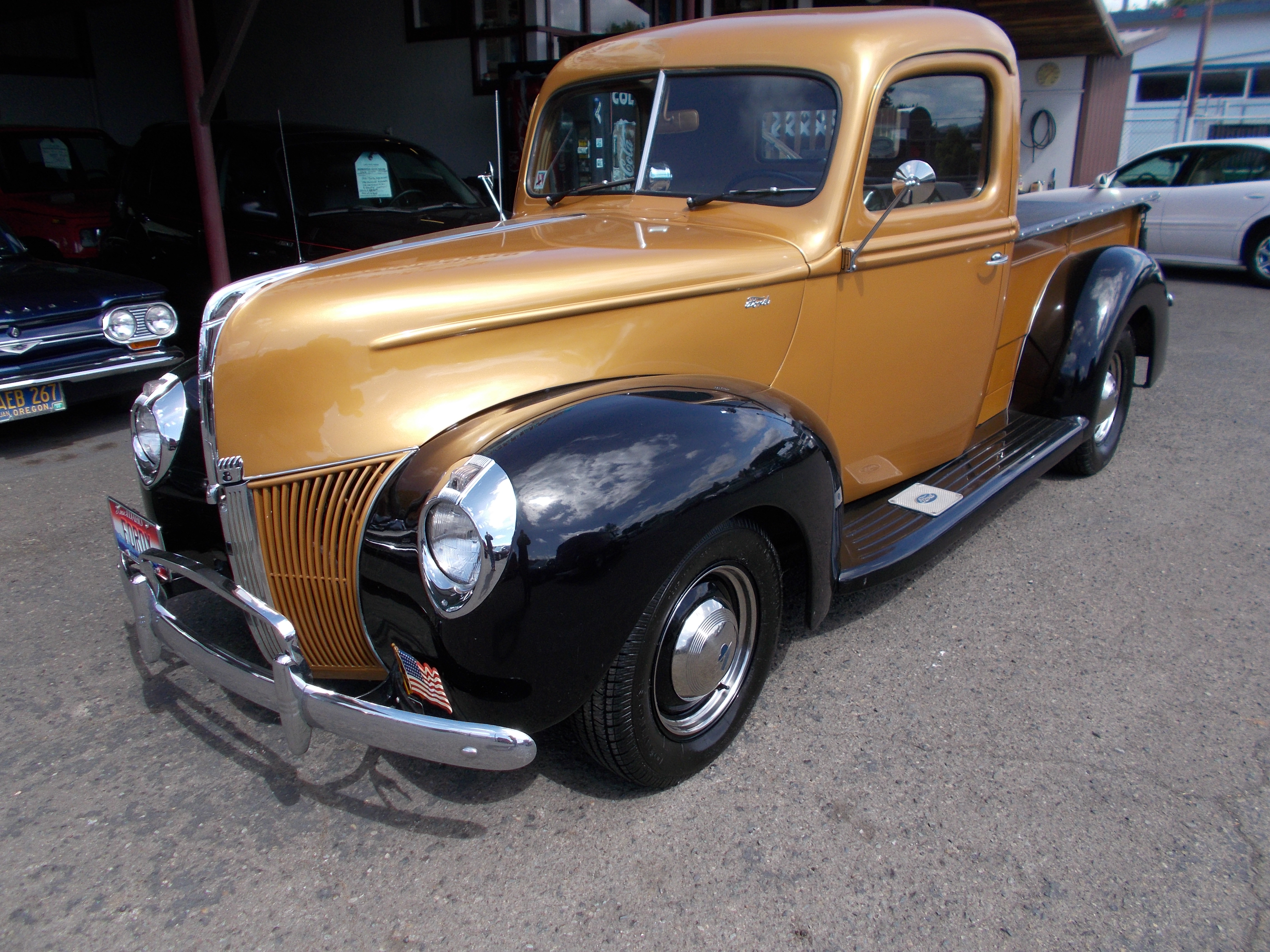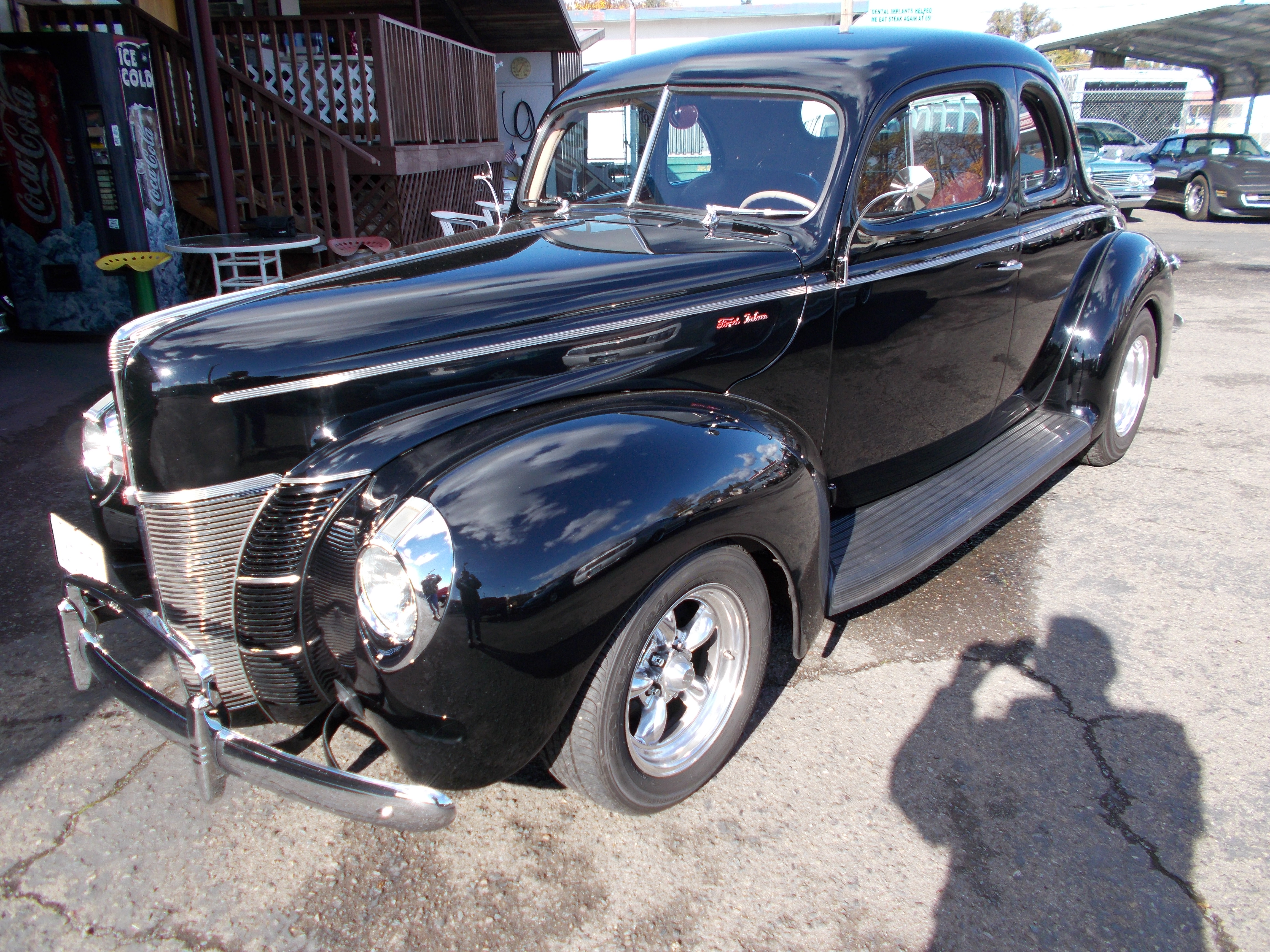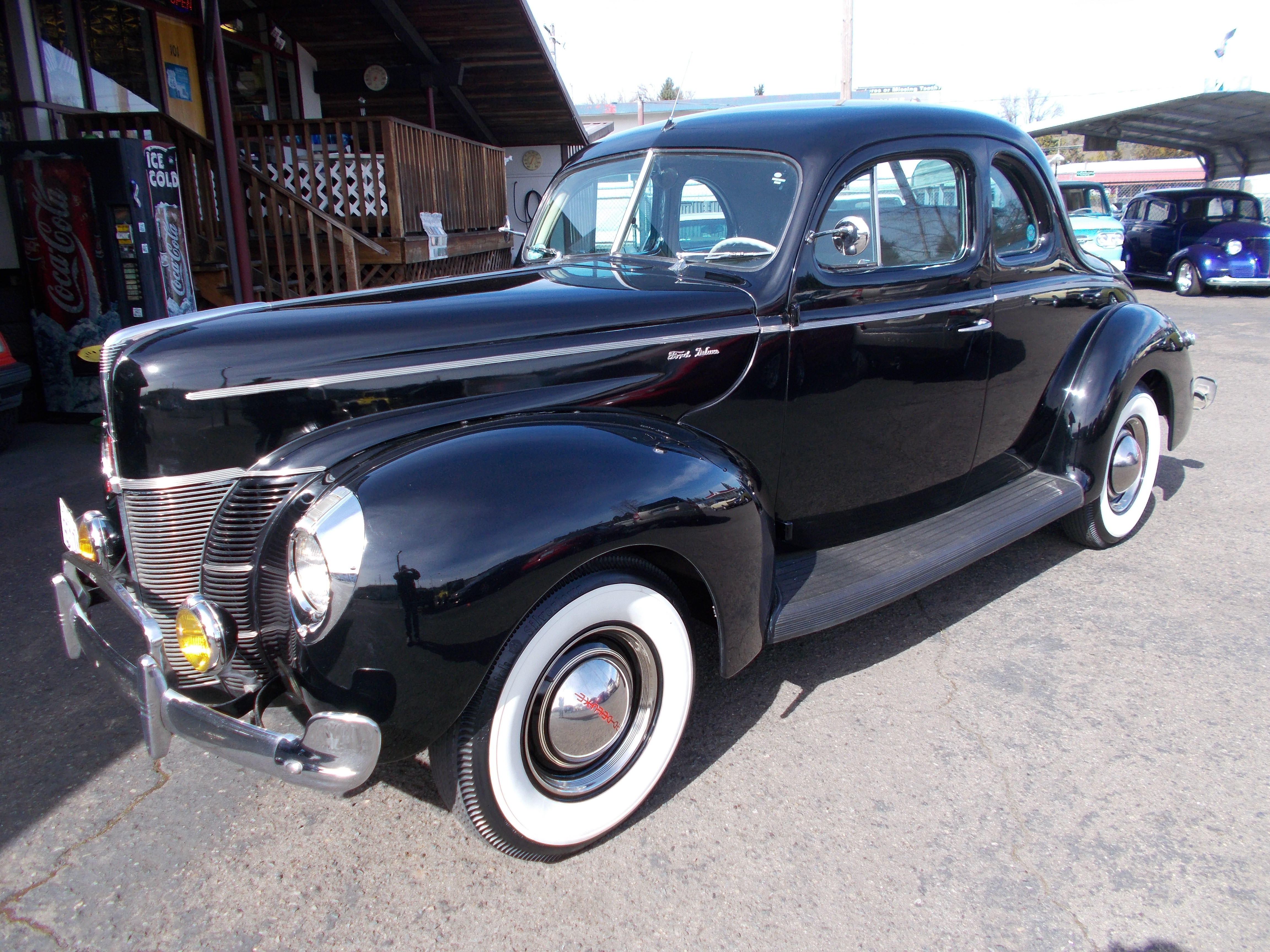 1940 Ford Opera Coupe, Steel car with Columbia rear end. Nice older restoration. Flat Head V-8, 3spd. transmission and Columbia rear end. Fuel tank and lines new. Body is solid from top to undercarriage with no rust problems, Doors fit car at the bottom as good as I have seen. Paint is older but looks very good - not perfect. All chrome and stainless excellent. Newer original style interior very good condition, All gauges, wipers and heater are working. Radio is there but dose not work. This car runs, drives and shifts excellent and Columbia rear end works proper. If you want a nice and solid 40 Ford this car is ready to cruise! # A-2046 $29,500 SOLD!