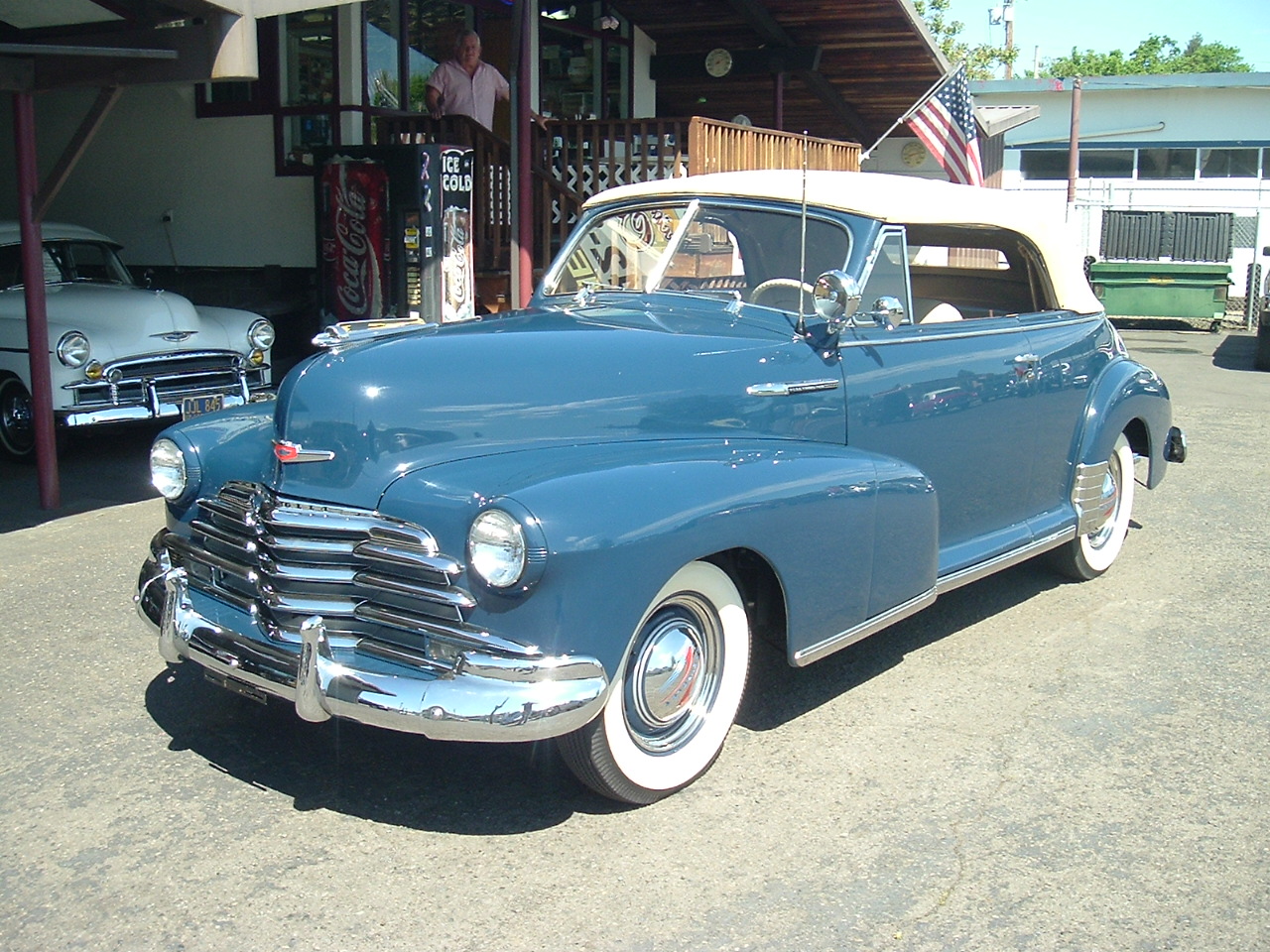 1947 Chevrolet Fleet Master Convertible. Model-2134, There were 28,443 produced in 1947. This car was restored to the highest original quality sometime in the early 80's. Winning first place at both the 1987 A.A.C.A. National Fall Meet in Hershey PA. and 1985 Forest Grove Concours D'Elegance in OR. I have the original car invoice from Keiser Chevrolet in Pottstown Penna. Also owners service policy and jack instructions. Car has 1,605 miles since completed and has always been in heated storage so car still looks fresh. Original 216 motor matching numbers, rebuilt and runs perfect. 3spd. transmission. Body is laser straight and all body lines fit excellent. Paint is top quality. All chrome, stainless, glass, top (power), rubbers ect. look new. Basically everything on car was replaced and looks new. Interior, cloth and leather looks like it was just put in car, its spotless. From the original car Invoice - Optional equipment and accessories include- Trunk Guard, Radiator Ornament, Exhaust Extension, Deluxe Steering wheel, Engine Lite, Trunk Lite, Oil filter, Dash Heater and Defrost, Push button Radio, Spot Lite, Fender Shields, License plate frames, Locking gas cap. Then under extra's is Undercoating and White Wall tires. The cash on delivery price was $1,949.00 The car was restored to its originality, The only change I know of is about 4yrs ago they put a split manifold with dual exhaust. Want one of the best this is it ! # A-1956 $49,950 SOLD !