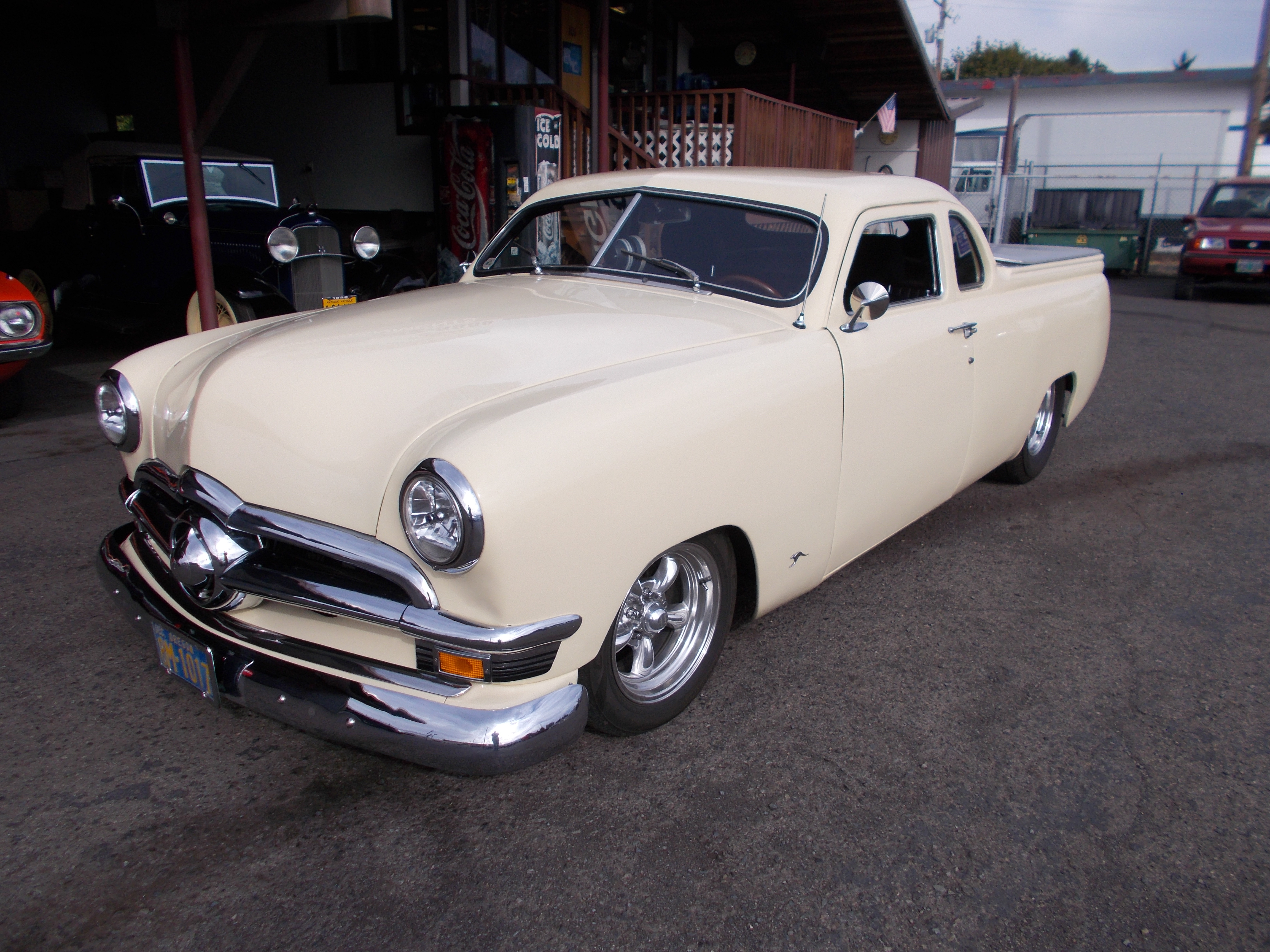 Customized 1950 Ford Australian Ute. Chopped top, filled tailgate. Too much to list all. There is a detailed list in pictures. Professionally built SBC 350 w/ Twin turbo, boost referenced fuel system, Turbo 350 trans. All new parts. New seats, shifter, carpet and upholstery, Auto meter gauges, power windows, Narrowed ford 9" w/ trac lock & 3:55 gears. Rear air bags w/on board compressor, modern front clip w/power steering and power disc brakes. Nice solid clean rig through out Excellent driver/Hot Rod. # B-1854 $34,900 SOLD!