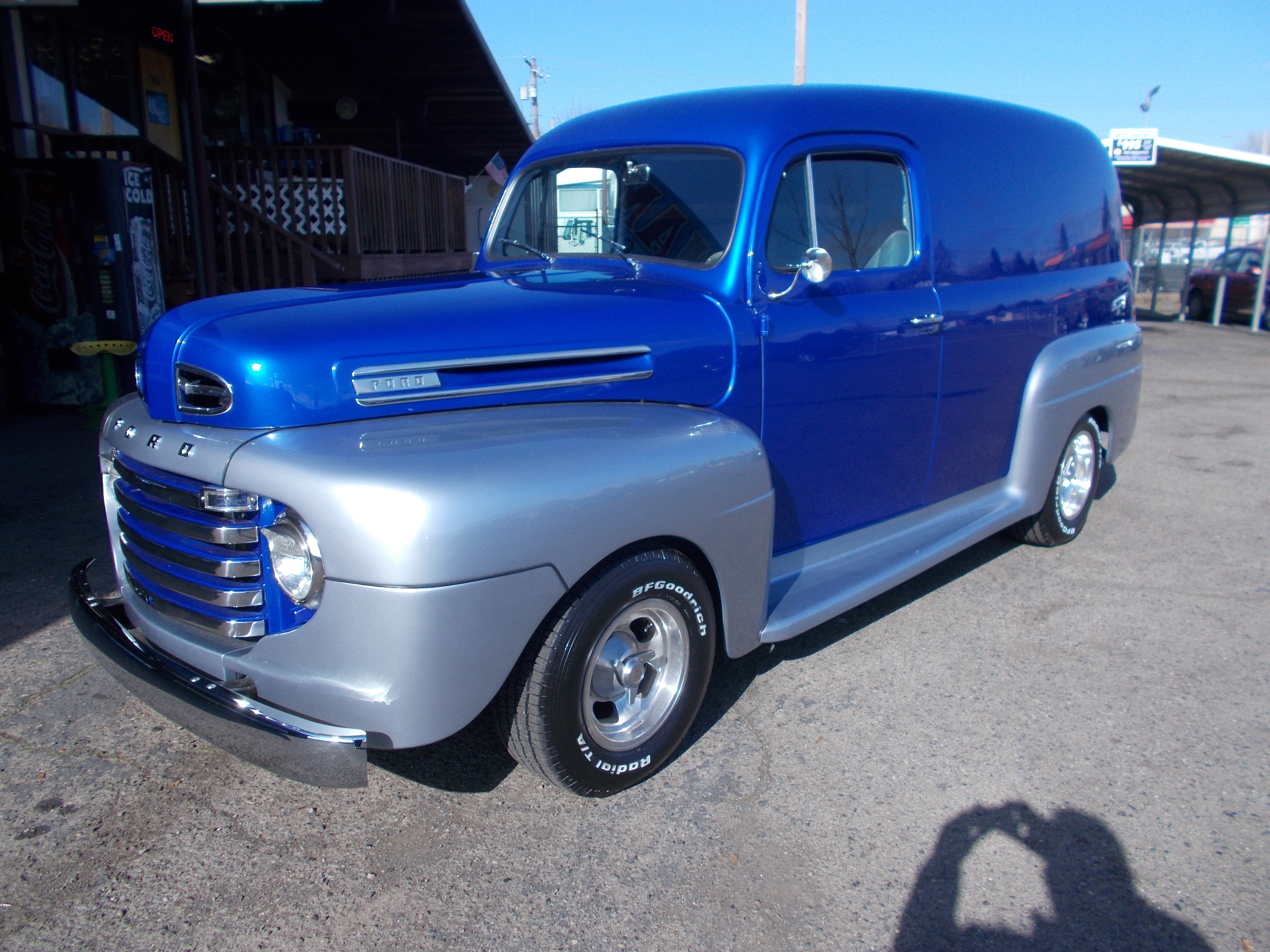 1952 Ford Panel, Street Rod. 49-50 Nose. 302 V-8, C-4 Auto Trans. GM front clip w/power disc brakes and PS. 9" ford rear end w/coil over's. 1,020 Miles since completed. Super straight body with high quality paint. After Market gauges and Lokar floor shifter. All new glass, Chrome, rubbers ect. Super nice Panel throughout. Drive's and rides excellent! # B-1859 $34,500 NOW! $29,900 SOLD!