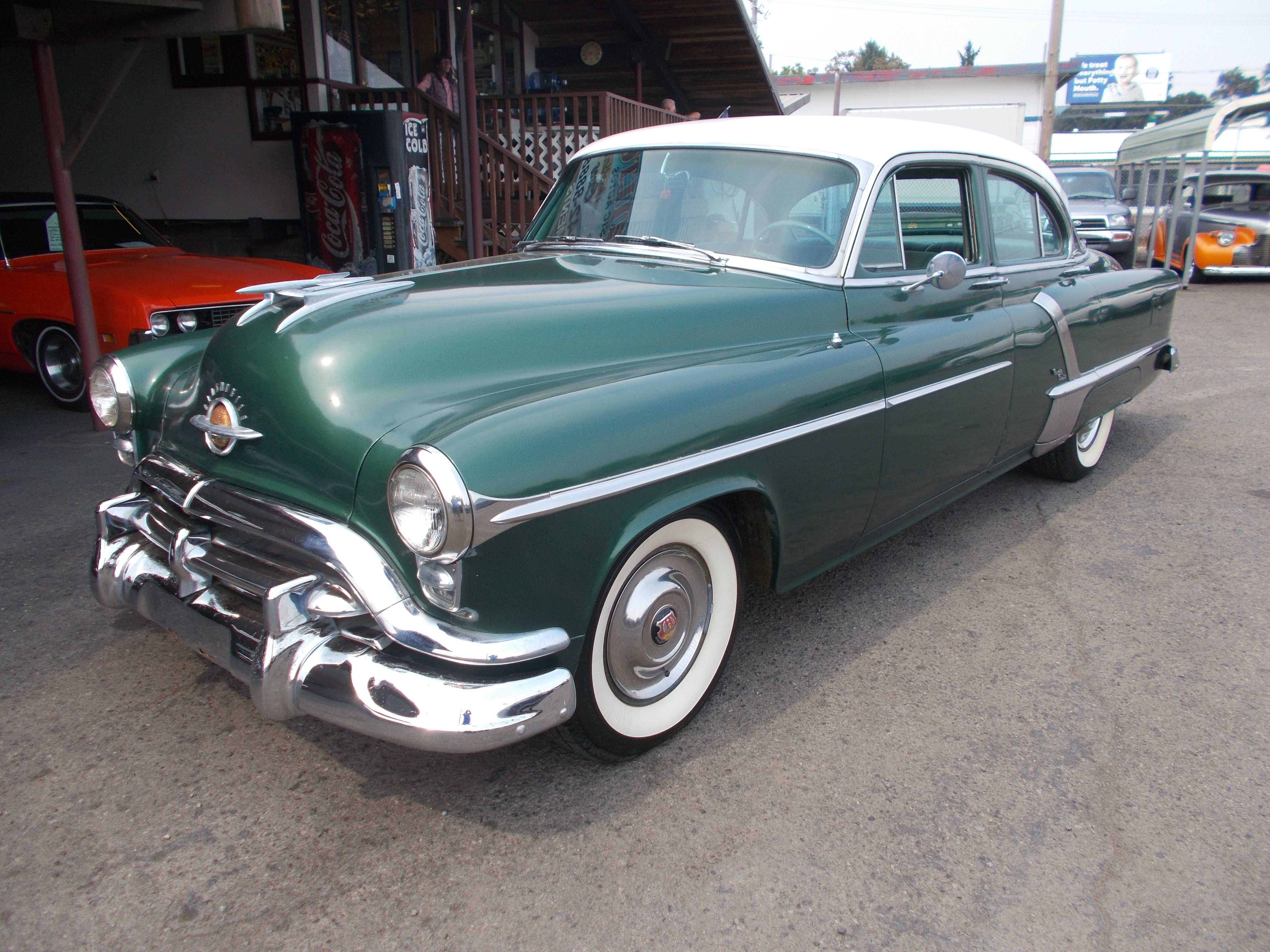 1952 Olds 98 4dr. Sedan. 303 V-8, Auto trans. Good solid body and under carriage. Same family owned for many years. Older restoration. Paint still shines but shows its age, Chrome is week on bumpers. Interior is nice but has a hole in center of front seat. Over all this is a great classic at and affordable price to cruise or do show in shines. # A-2213 $6,950 SOLD!