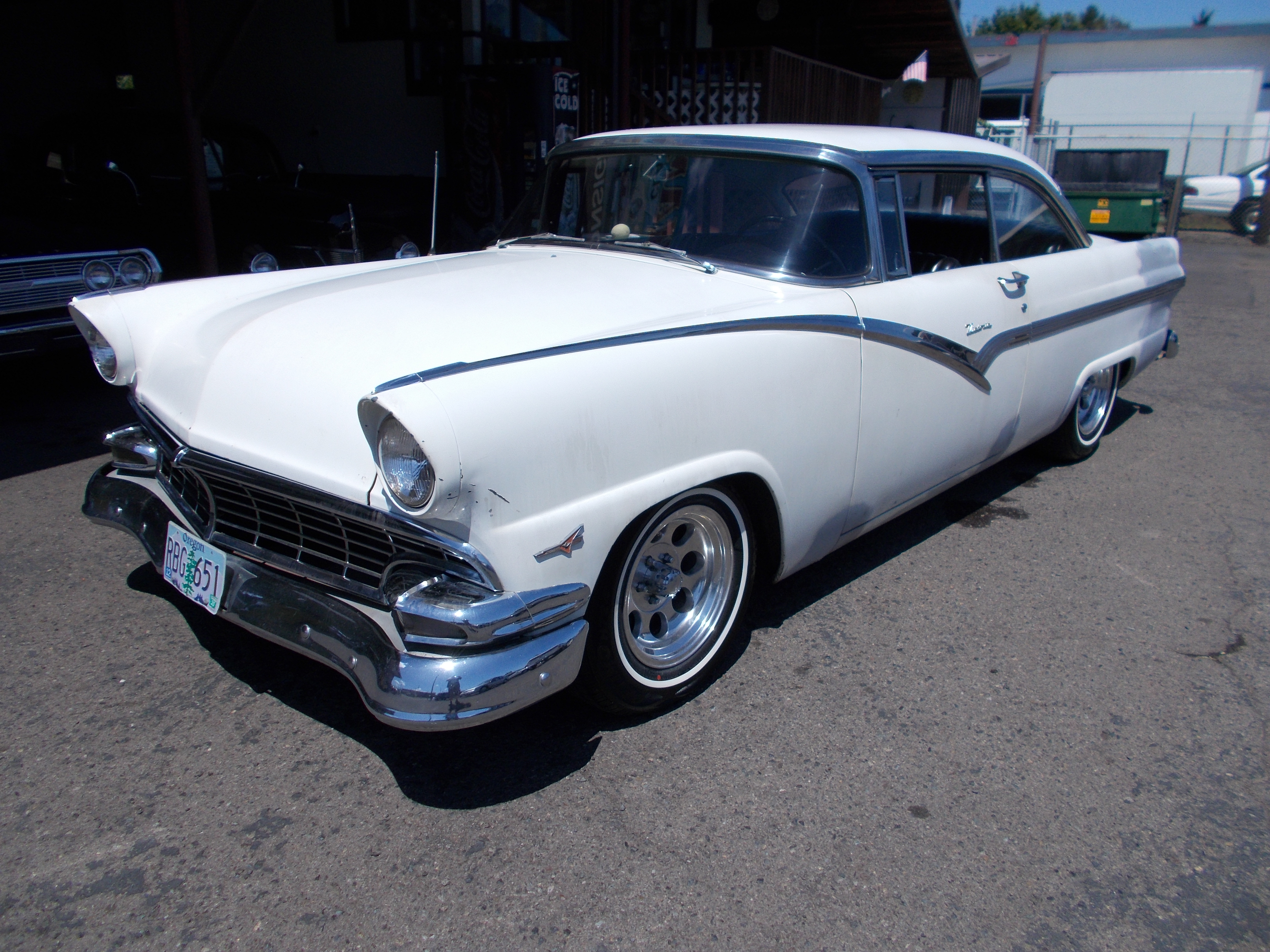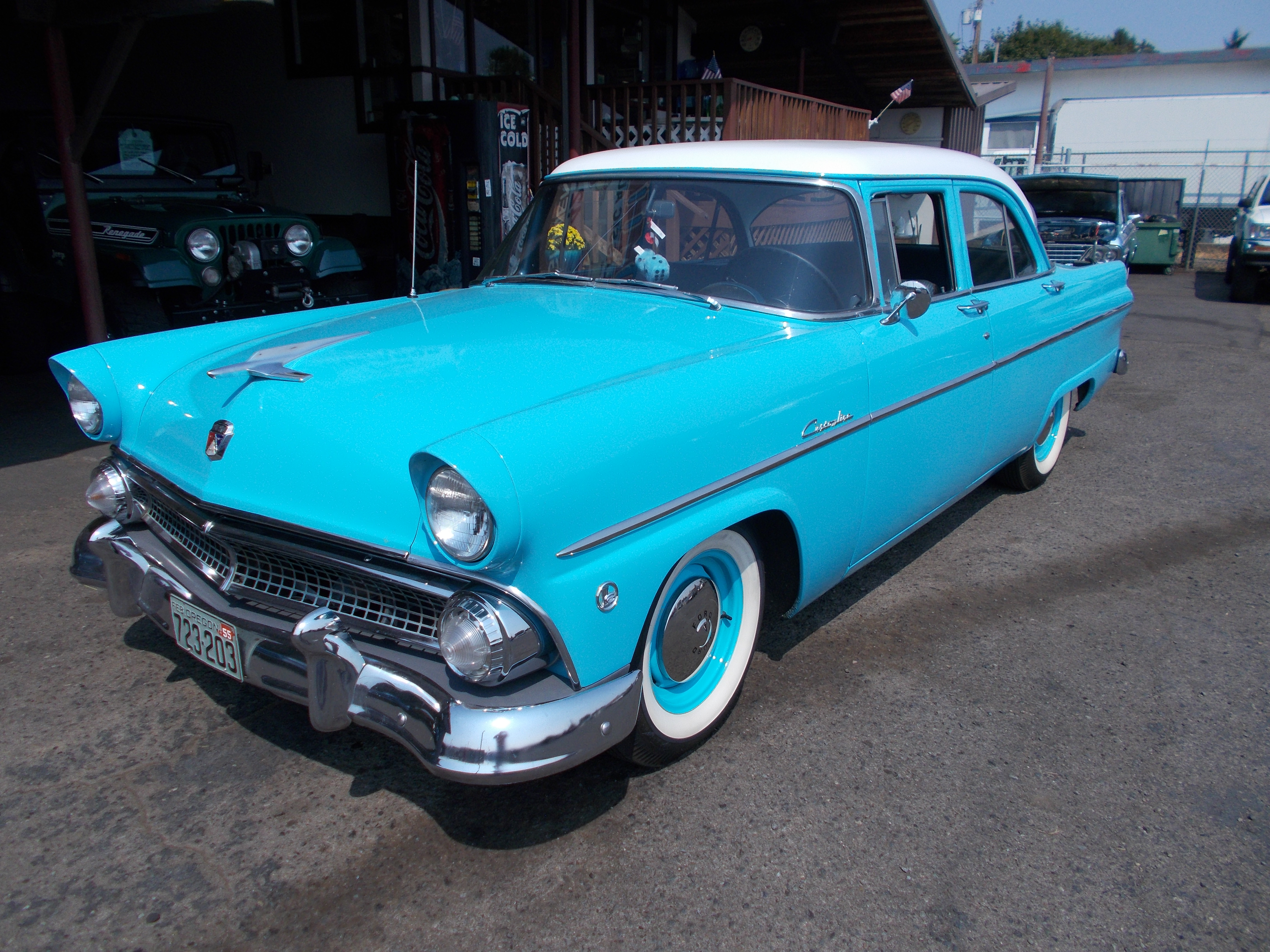 1955 Ford Custom Line 4dr. 6cyl. 3spd. column shift. Motor rebuilt. Nice body and paint. Real nice newer interior. Chrome and stainless all good. Glass is all good but passengers front door glass crack but have good glass to replace it in the trunk. Nice cheap show and shine car and cruiser. # A-2171 $$11,500 NOW! $9,950 SOLD!