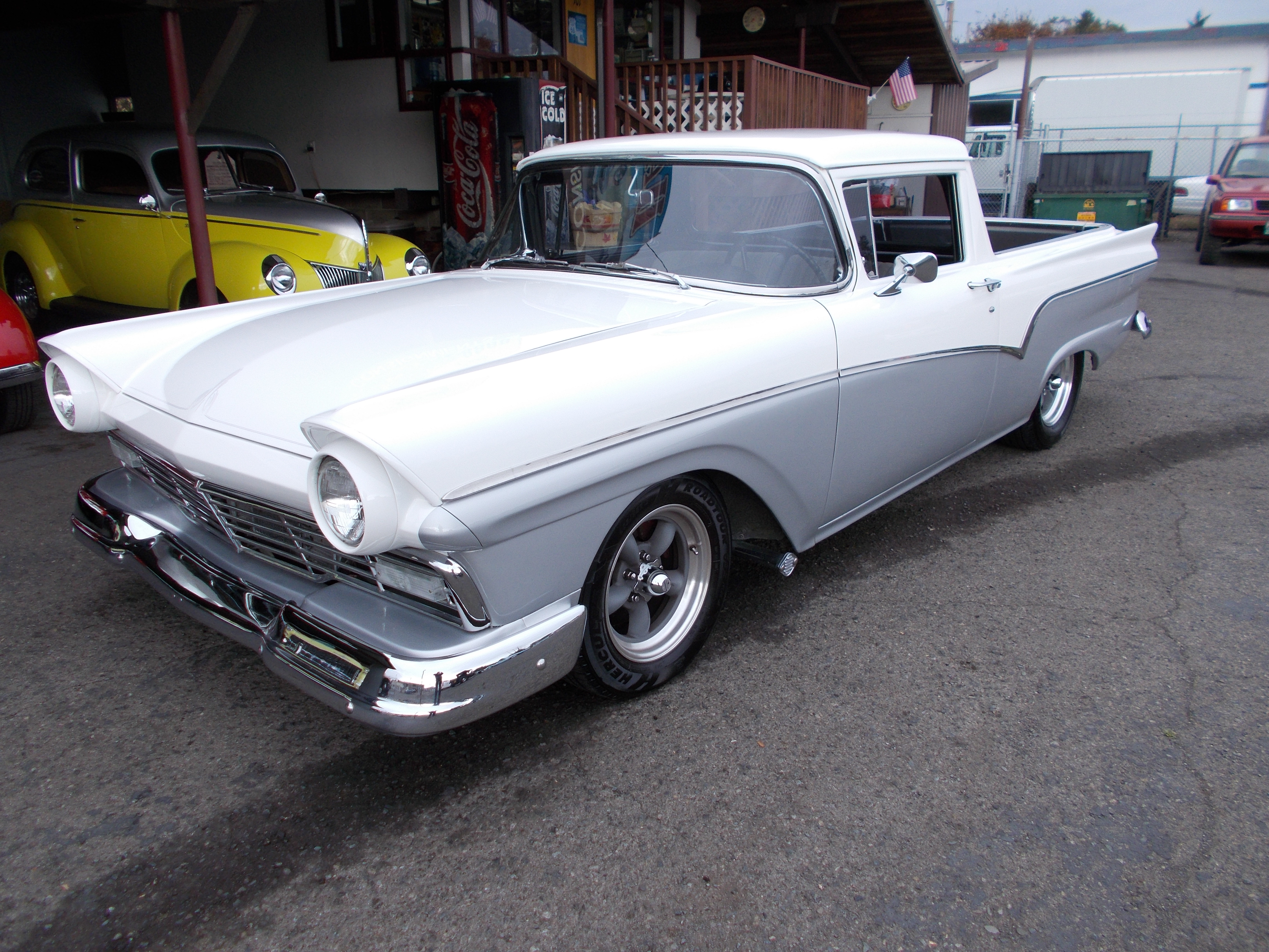 1957 Ford Ranch Wagon Street Rod. Nice older restoration. 302 V-8, C-4 auto transmission. PS, PB. A/C. Car has been done a while and still looks and runs very good. Body and paint in great condition. Cloth Interior in Nice condition, Has A/C and CD player. All glass, chrome and stainless nice. Car is ready to cruise and hard to find body style. # A-2058 $25,500 NOW! $23,900 SOLD!