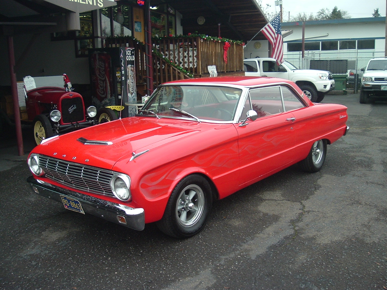 1963 Ford Falcon Futura 2dr HT. 347 Stroker V-8 with less then 300 miles, Top loader 4spd transmission. Power front disc brakes, Heidts complete front suspension, Shock towers removed, Rack steering, New posi rear end, New - Radiator, water pump, fuel pump, Fuel tank, Rear springs, Seat covers and carpet, Clutch, Starter, Carb, Wiring harness, Shocks, Tires and much more. Car was painted 25 years ago and has Ghost frames. Body and paint very good and after all these years it just as a couple rust bubbles above passengers rear tire. Rubbers ,Chrome, glass and stainless all good, Also have all of body side moldings that came on car in great condition. I have pages of thinks done to car not listed. # A-2001 $23,500 NOW ! $17,950 SOLD!