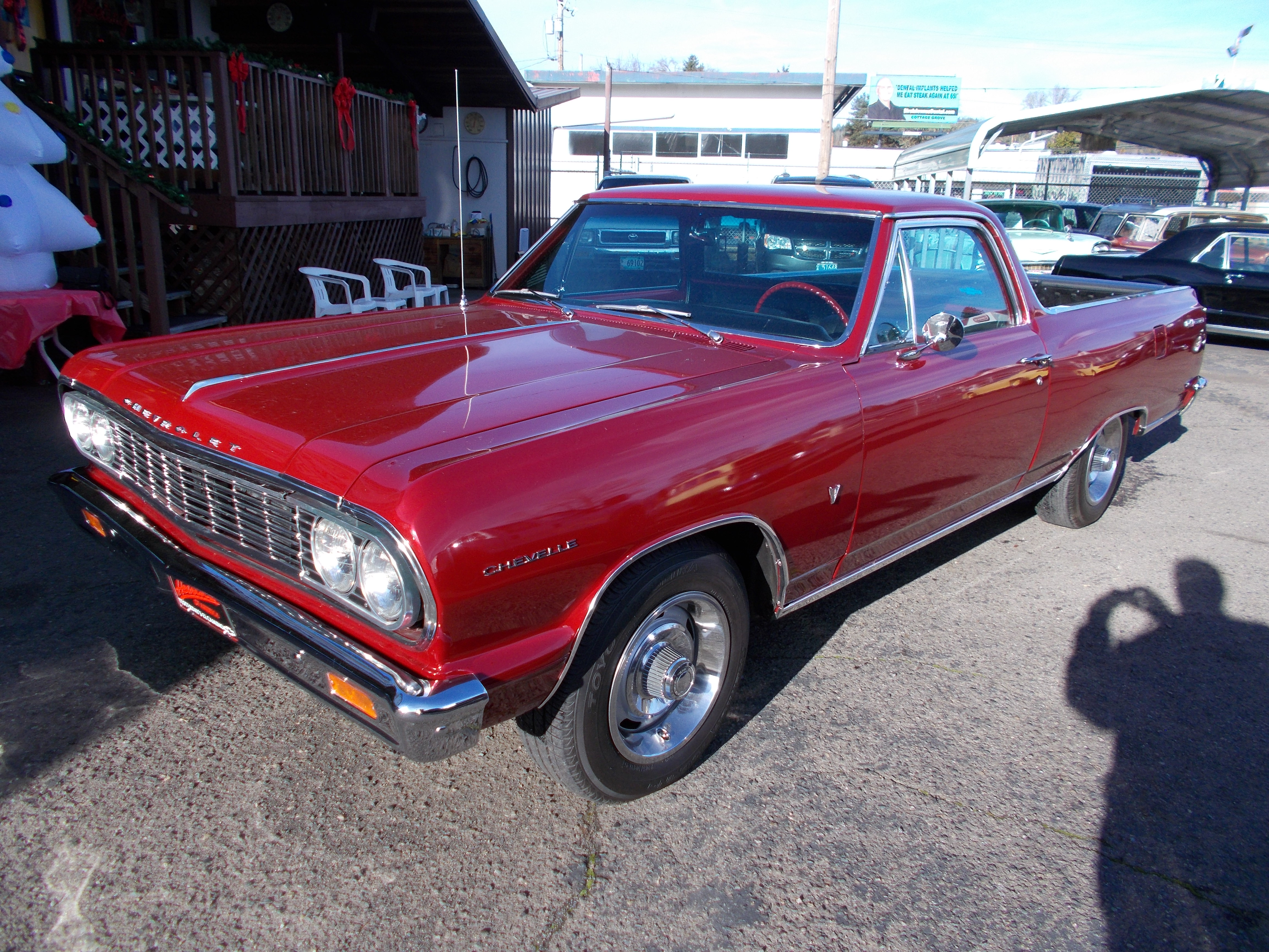 1965 Chevy El Camino. 383 V-8, Turbo 350 Auto trans. PS. Power front disc brakes. 10 bolt rear end w/3:05 gears. Body is straight and solid with nice paint. Interior is nice, the center console could use some work. The 383 Stroker has less then 8,000 miles on it w/Roller Rockers. 2 1/2" Flow master dual exhaust. Good running and driving car ready to cruise. # B-1834 $19,500 NOW! $14,500 SOLD!