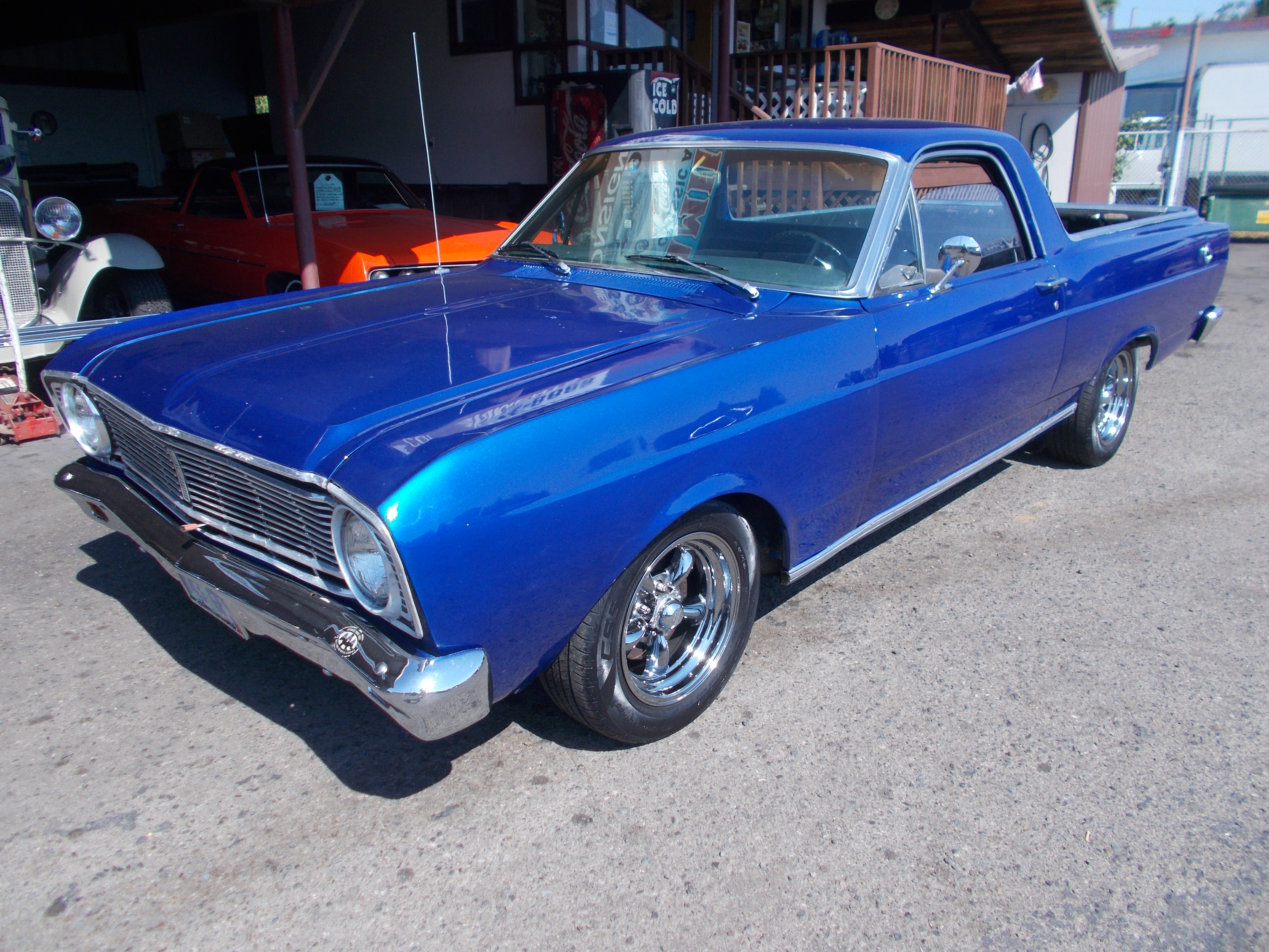 1966 Ford Ranchero. 347 stroker V-8, Auto O/D trans. PS, PB. This a good driver. The paint is about 5 years old and is shiny but not great body work, there are some rust bubbles showing up in a few places. Would also need all floor pans replaced. This car would make someone a good cheap Classic to cruise around. Rebuilt Title # B-1832 $6,450 NOW! $4,950 SOLD!