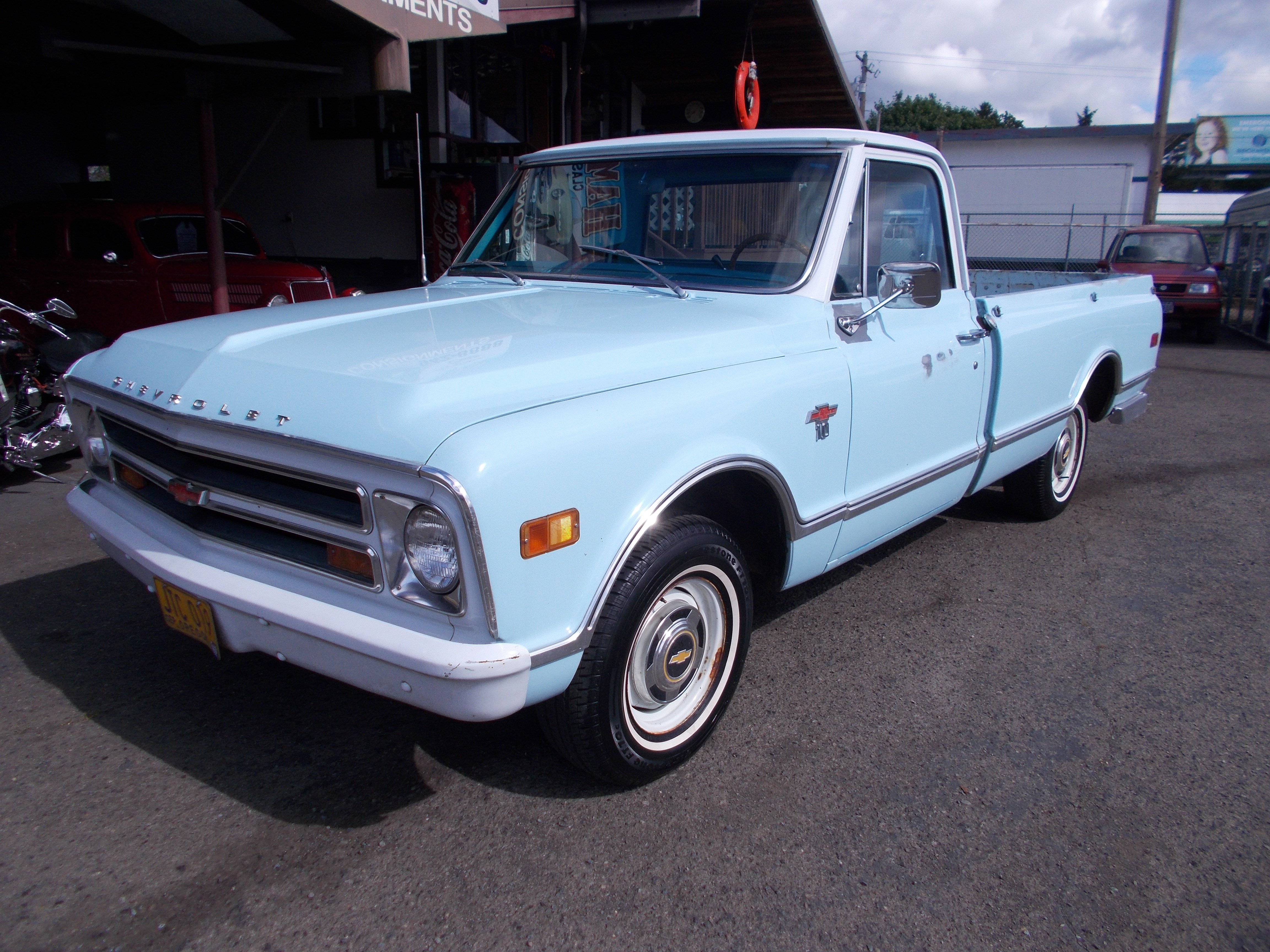 1970 Chevy C-10 Factory CST/10 Short Bed 4x4. This truck had the same owner past 38 years. 1 1/2 year ago he had it painted back the original color, Truck still had original paint and there where no rust problems other then just a little at bottom of rocker panels so they were replace the rest of truck solid original metal. All the stainless trim and light covers replaced. The grill surround and bumpers are original. All rubbers replaced. Truck came with factory bucket seat with center console, Factory tach works great. Factory A/C compressor removed but is available along with the original 350 motor. The interior is original other then he put 1972 door panels and window regulators. The bed has been Arma coated. The motor is a 350 V-8 rebuilt long block, the transmission was rebuilt at the same time and both have 6,764 miles on them. The odometer was reset at the time to read correct with motor and trans miles. When the motor was rebuilt they also added power front disc brake. This truck runs and drives excellent! Hard to find. # B-1699 $23,500 NOW! $21,500 SOLD!
