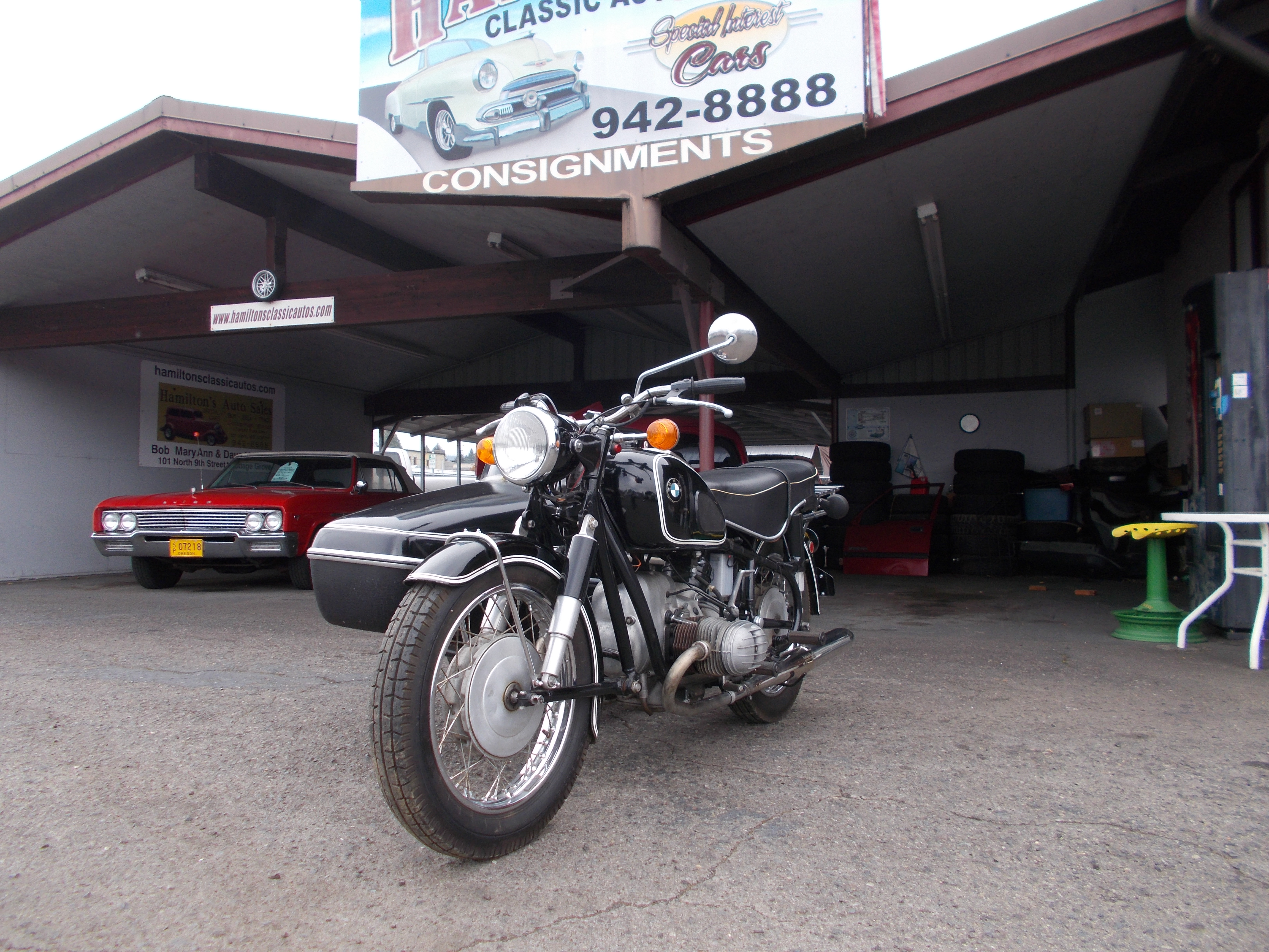 1969 BMW R60 W/Sidecar. 600cc, 4spd.trans. Bike is in nice over all condition. I have not road it, but the older gentleman that owns it says it ride good and runs excellent. He is sending me the paper work where he took it to a BMW bike guy and had him go through and fix anything it need. I now have the receipts listed in with picture, around 2,000 spent. # C-244 $8,950 SOLD!