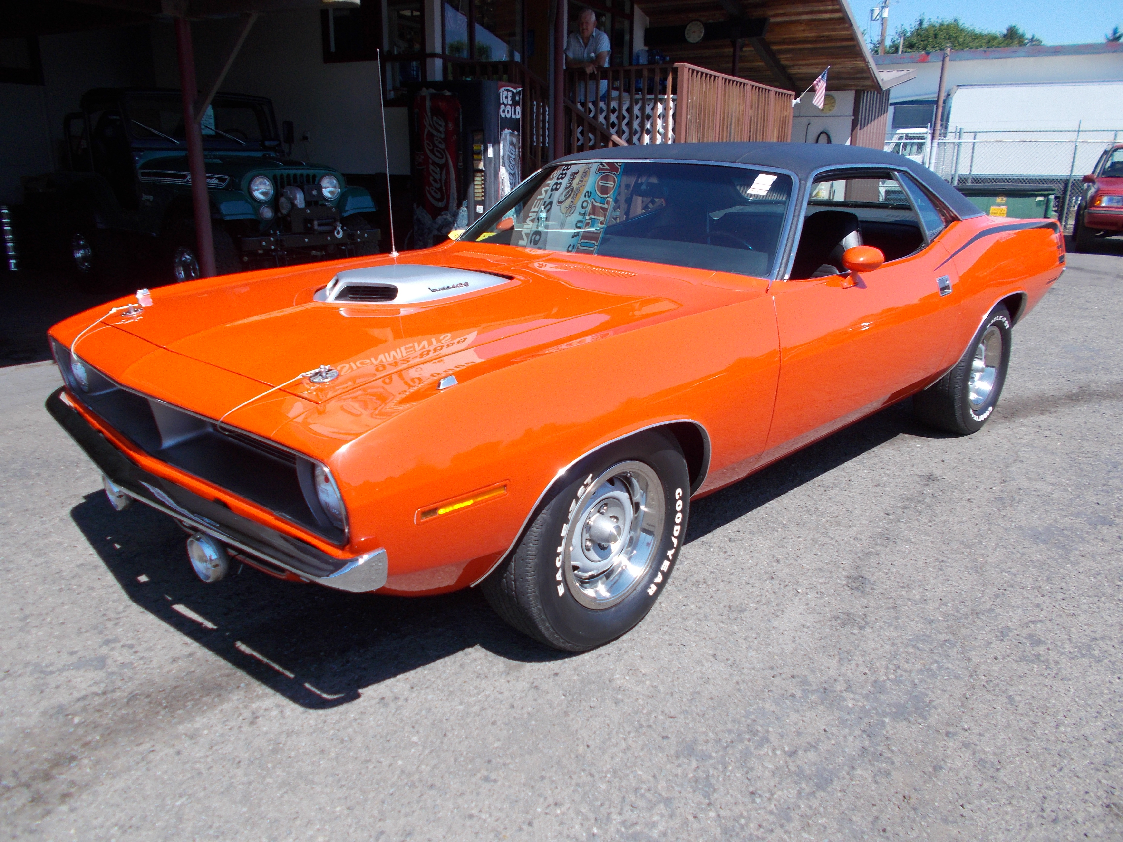 1970 Plymouth Cuda tribute. 440 V-8, Auto trans. Motor, trans and six pack are period correct 1970. Shaker Hood. Car was built about 20 years ago. Have some pictures during build. Car started as a 318 V-8 Barracuda, auto trans, (posi rear end- still in car) and was a Factory A/C car. Minable rust repair - Small panel in trunk and around front and rear window. Paint and body excellent, Interior has new seat covers, Carpet and head liner. original dash, door panels and center console. Motor is stock with mild cam and upgraded ignition system. Too much to list, call if serious. # A-2165 $89,500 NOW! $64,500 SOLD!