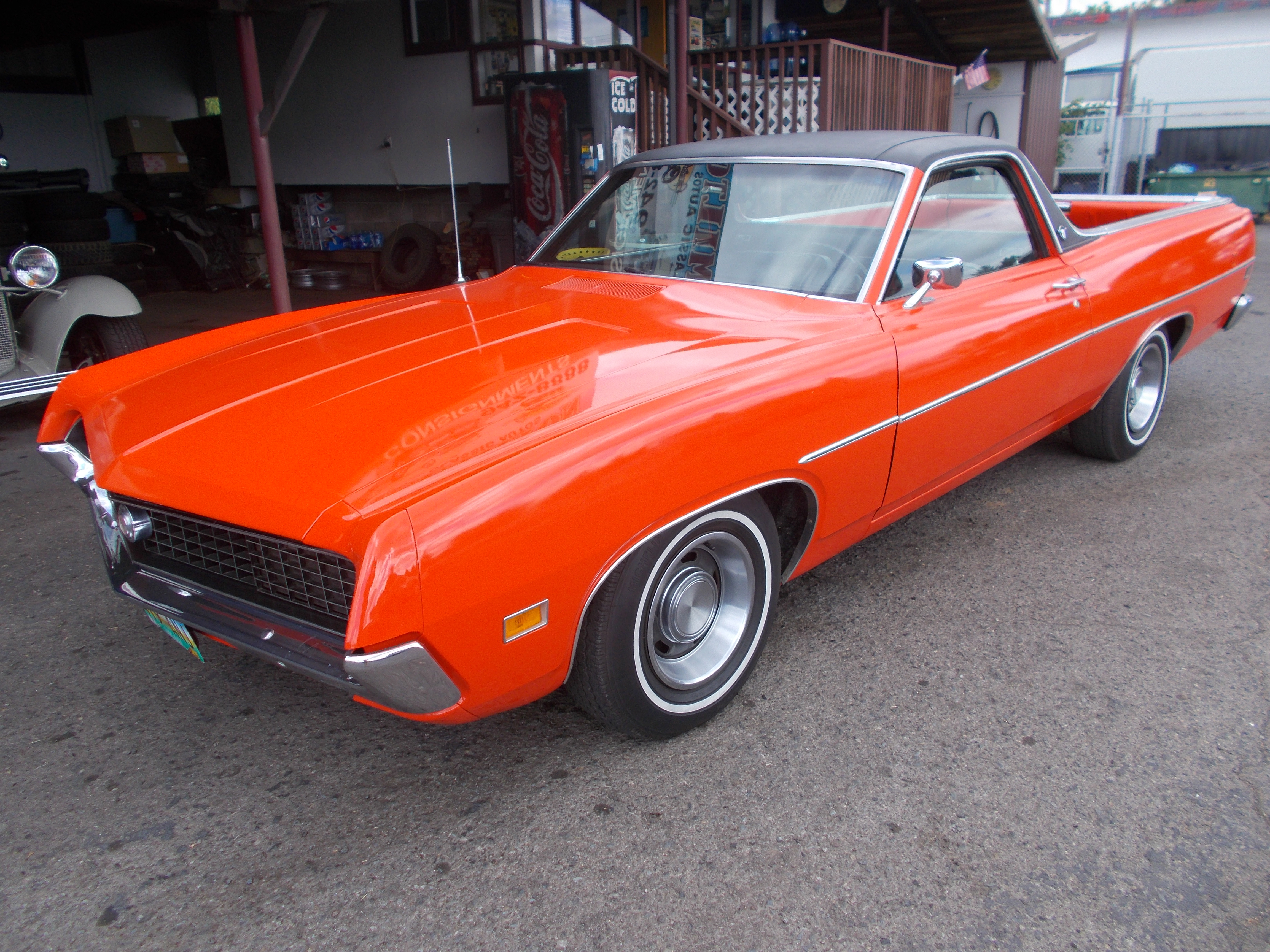 1970 Ford Ranchero 500 W/factory ordered options - Folding Torino Headlights, Wheel caps and Beauty rims, Black vinyl roof, Trim on body. Car is a 1-owner and has 84,380 original miles. Originally was a 302 V-8, now has a 351 Cleveland with low miles, Auto transmission. Car has never had any rust repair and was painted once. Original interior with new correct seat cover. I pictured all recent repairs - Brakes, exhaust ect. Excellent running and driving Ranchero ! # B-1827 $26,500 NOW! $15,900 SOLD!