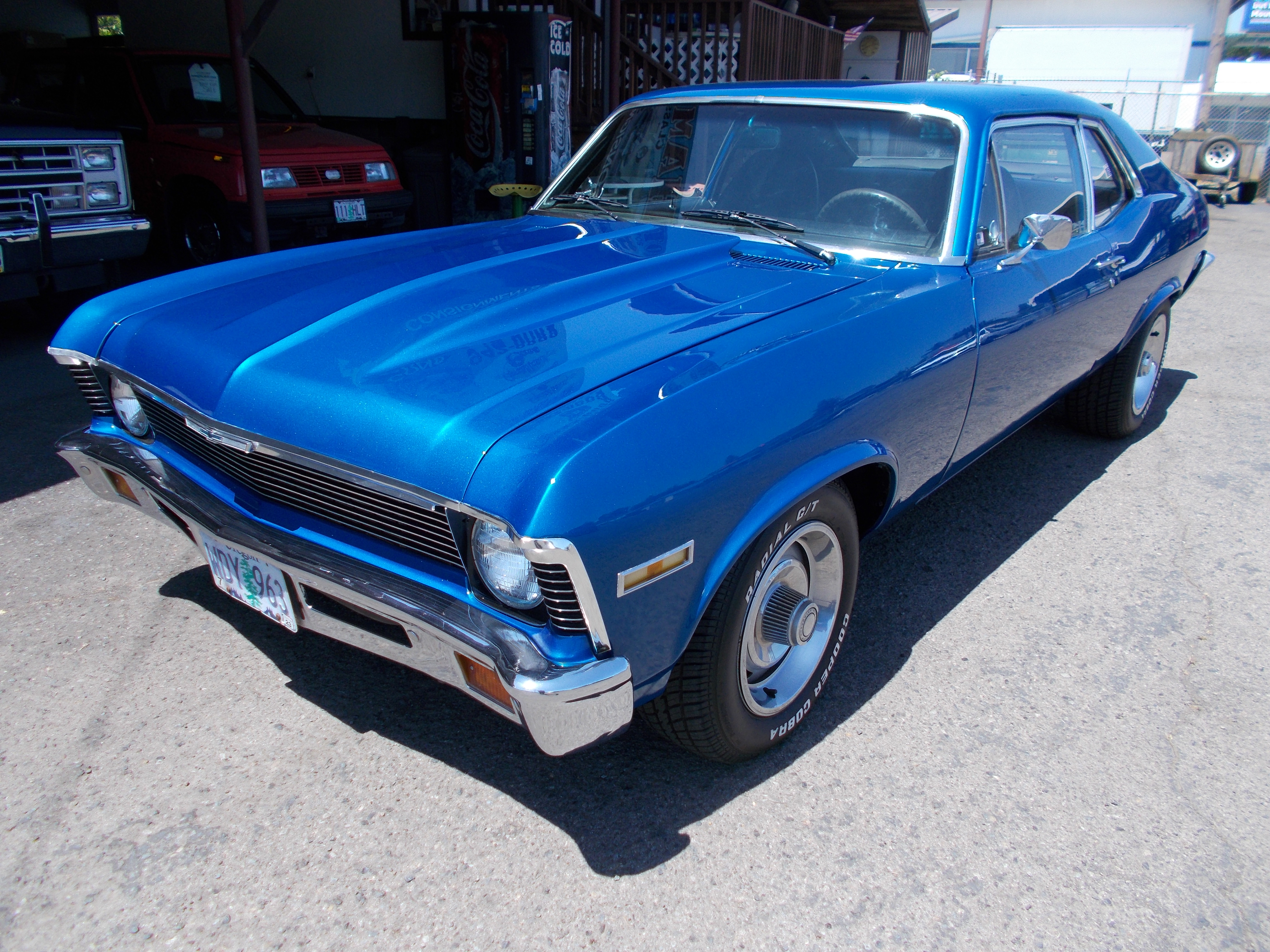 1970 Chevy Nova. 350 V-8, 4spd. manual. PS, Power front disc brakes, drum rear. Good solid car with a nice 3-4 year old paint job. Black vinyl interior great shape. 350 roller motor, casting number 5.7 LG SG1, 4spd. trans, New Posi rear end and axles, brakes, new fuel tank, front and rear sway bars, Aluminum radiator and much more done all with in around 700 miles. Stainless and chrome original and good condition, rear bumper chrome is a little weak compared to rest of the car. Car is not perfect but a real nice driver and show & shine car ! # A-2209 $24,500 SOLD!