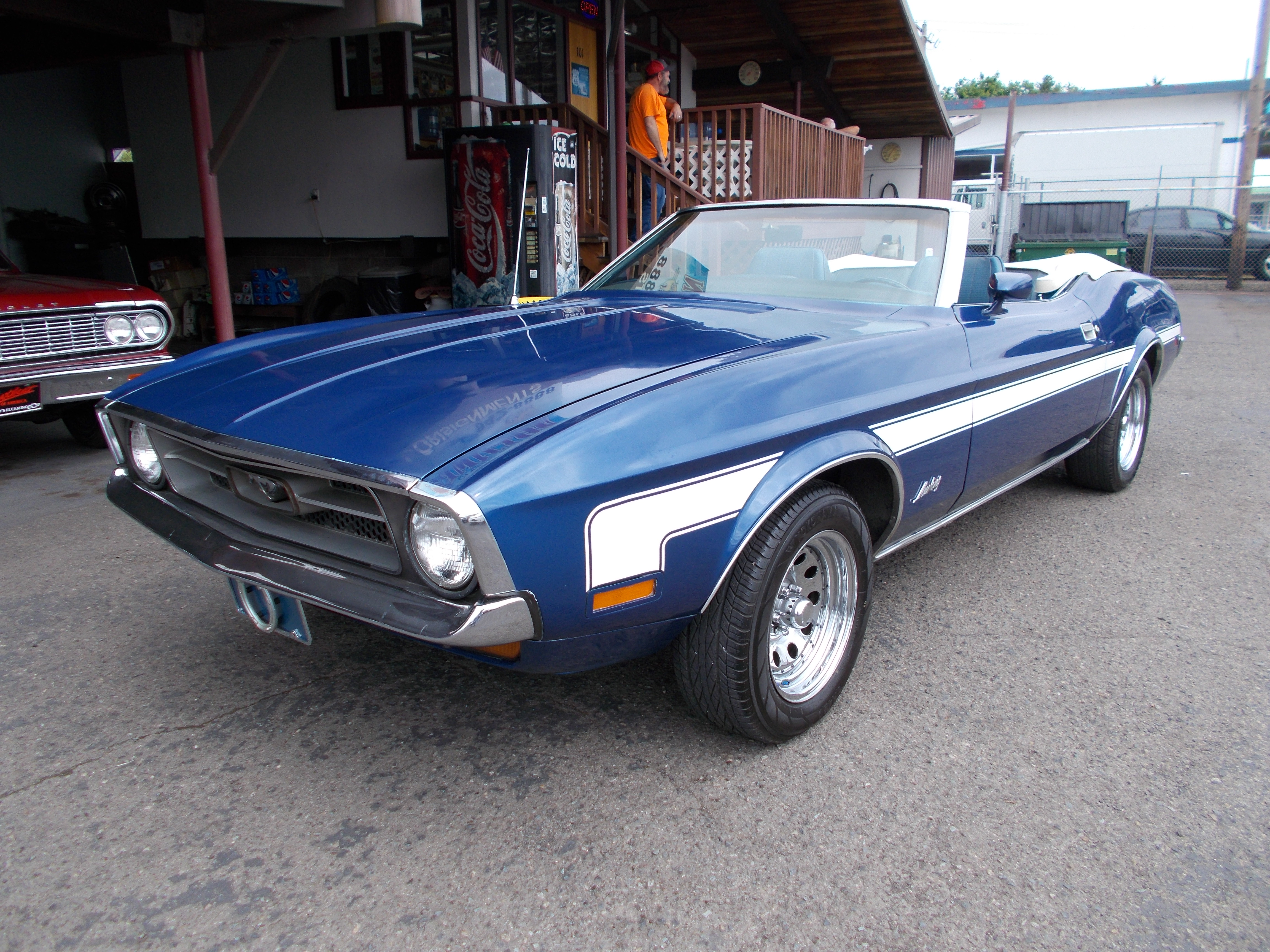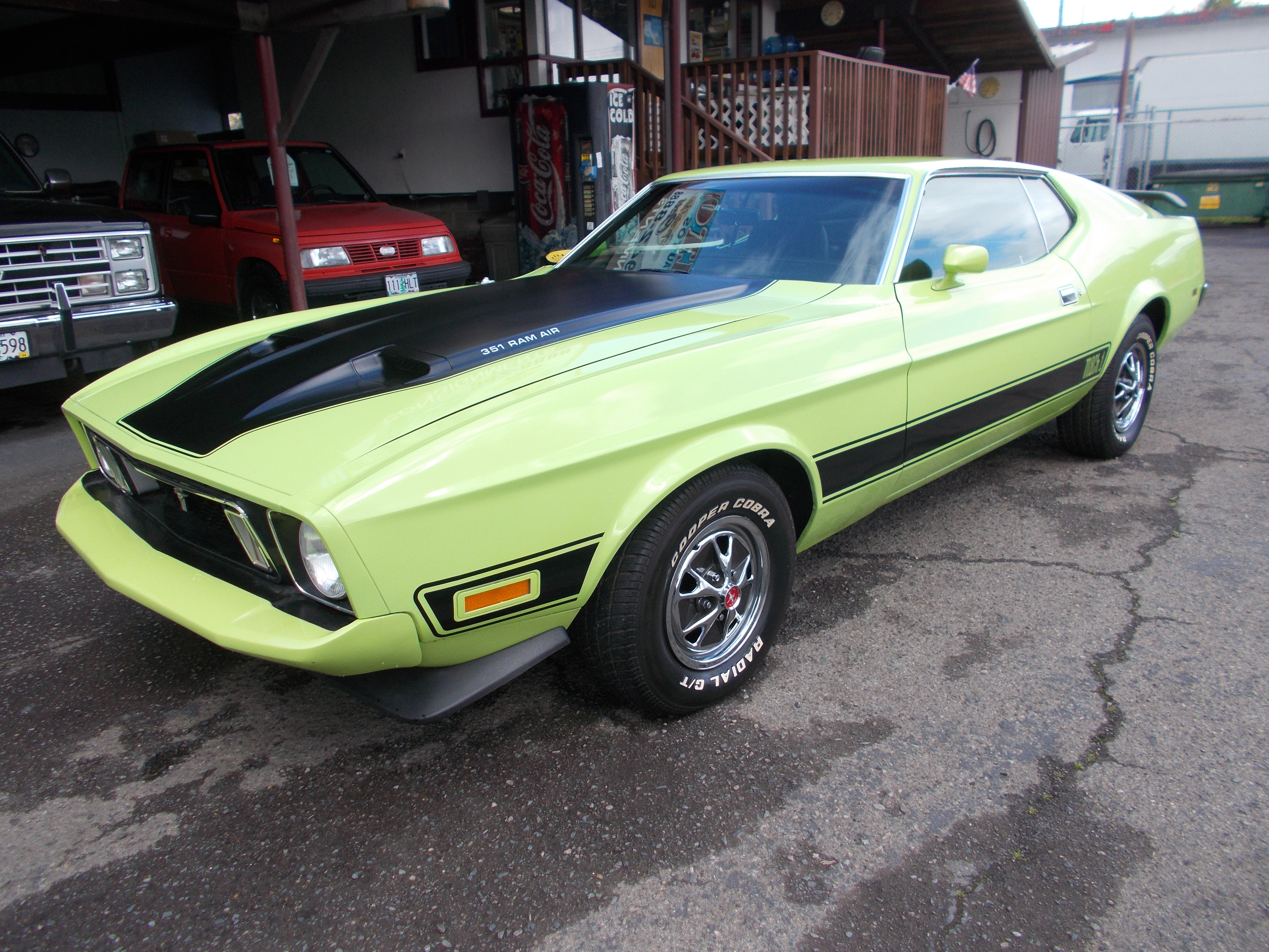 1973 Ford Mustang Mach 1. 351 Cleveland V-8, C-6 auto transmission, PS, Power disc front brakes. Nice paint and body, undercarriage painted also. Solid car with no rust issues. Interior is great condition, has new retro radio and speakers-hands free, remote sirus Mx. Also new LED headlights. I have a picture of the Data plate listed. Everything appears to be correct on car except it looks like originally car was Red. Runs and drive excellent! # A-2208 $31,900 NOW! $23,900 SOLD!