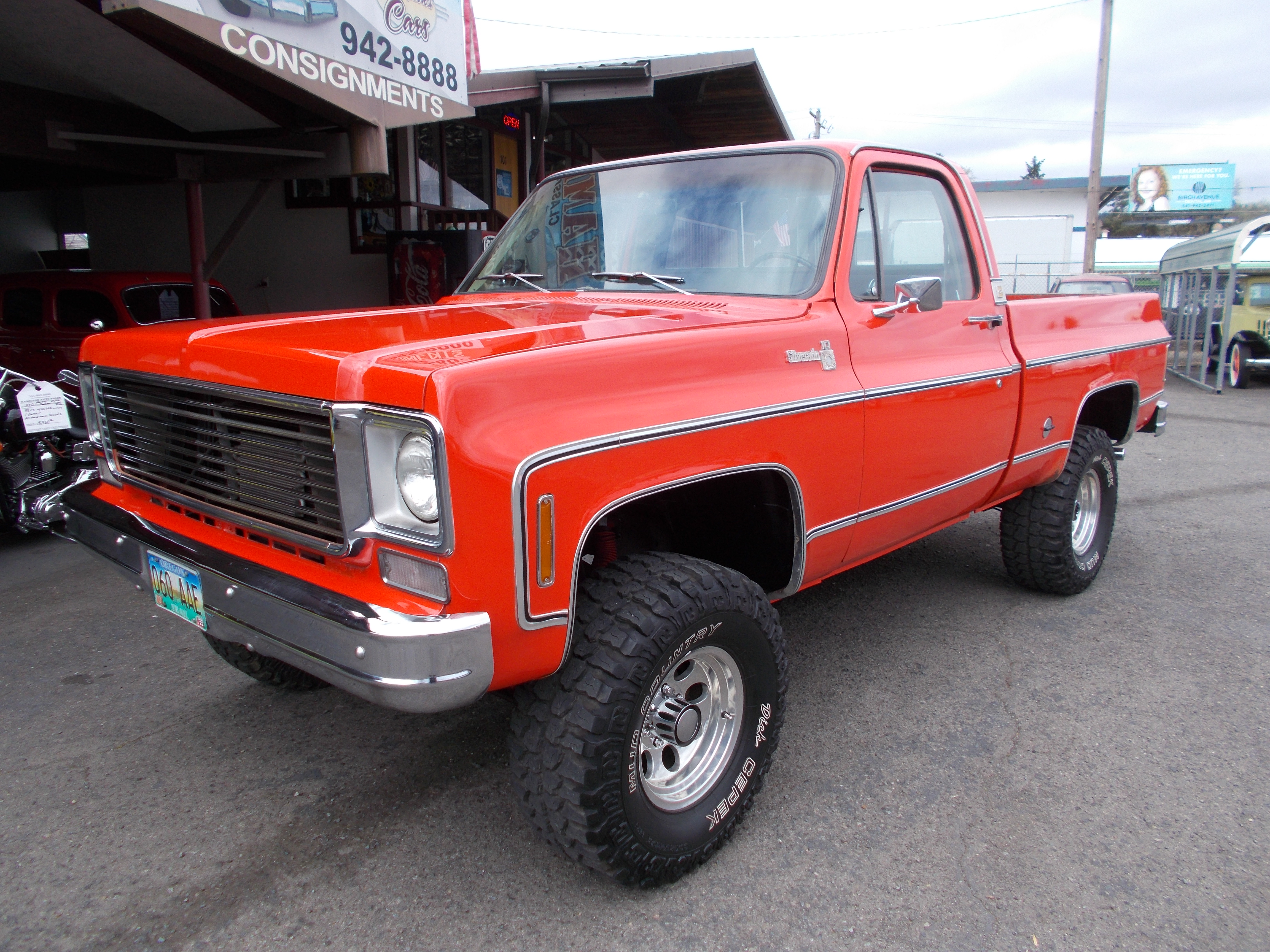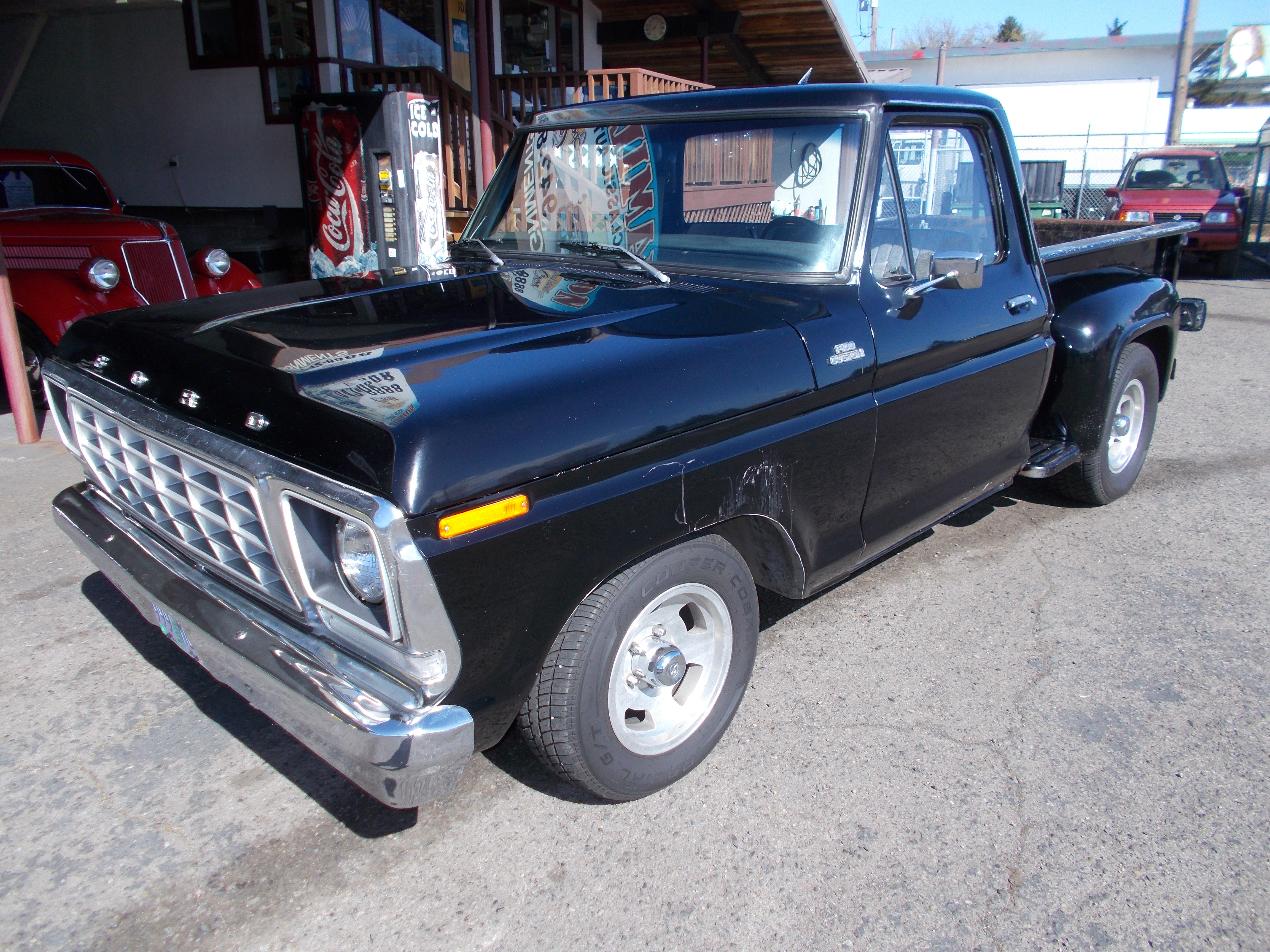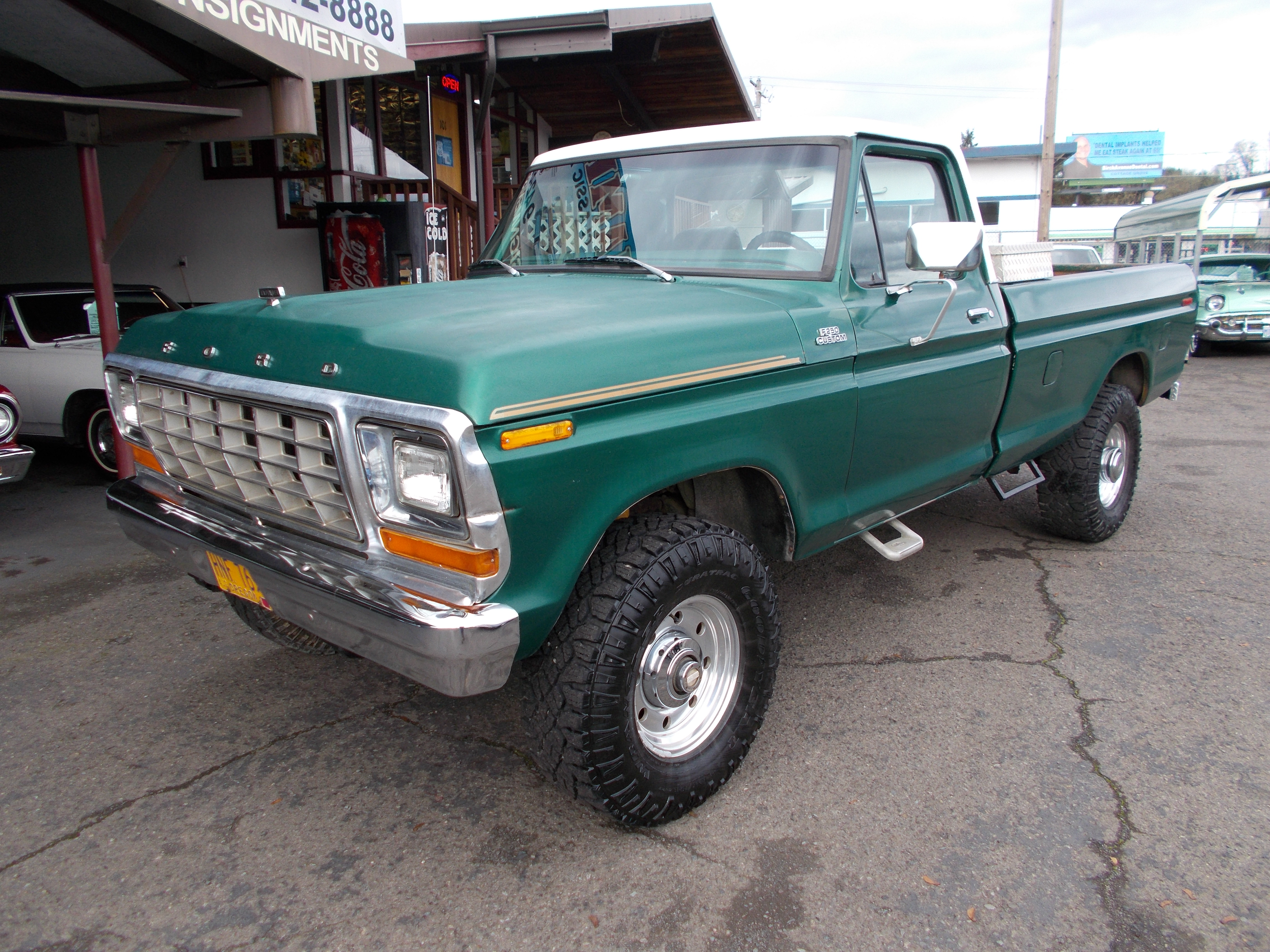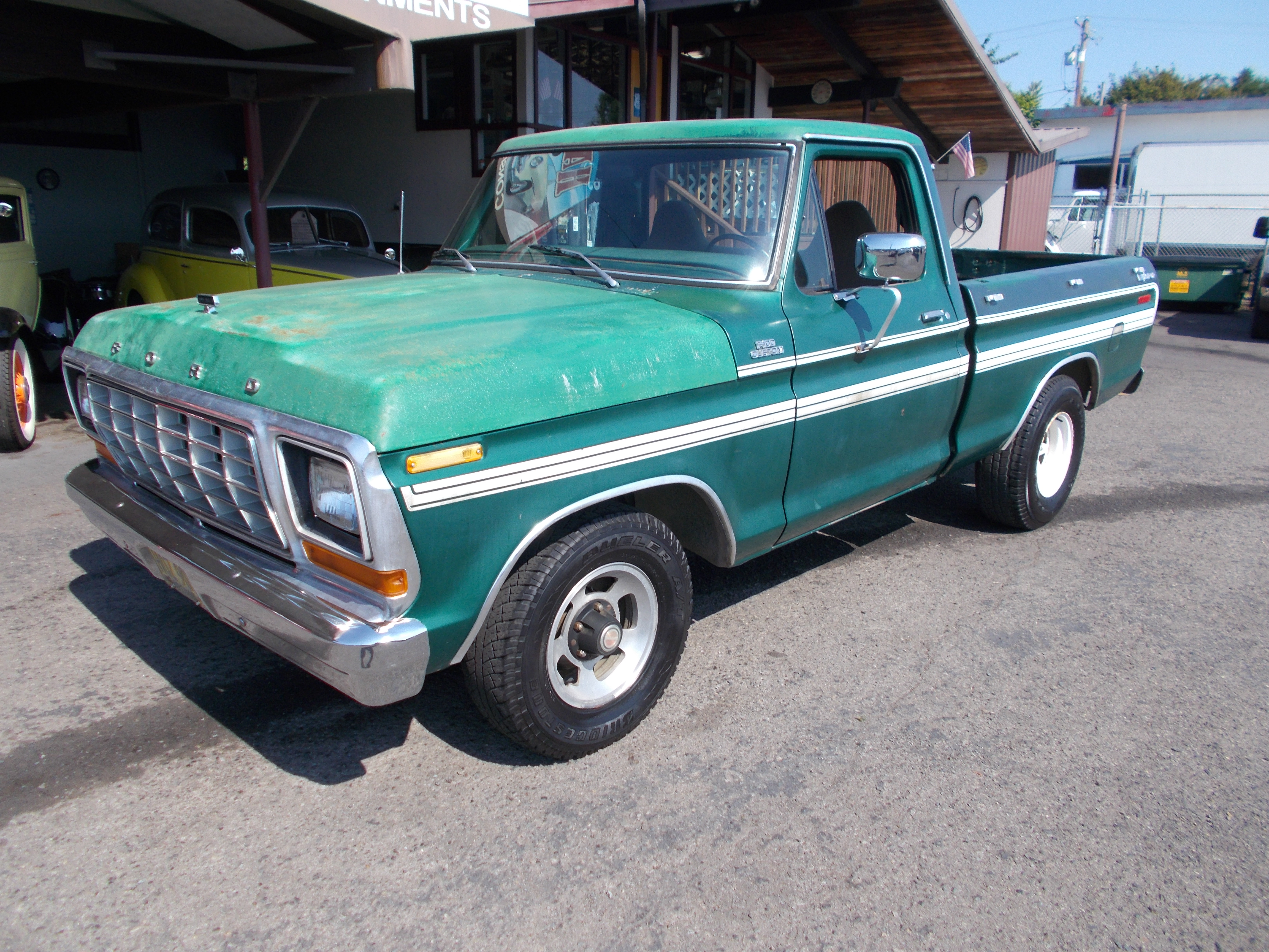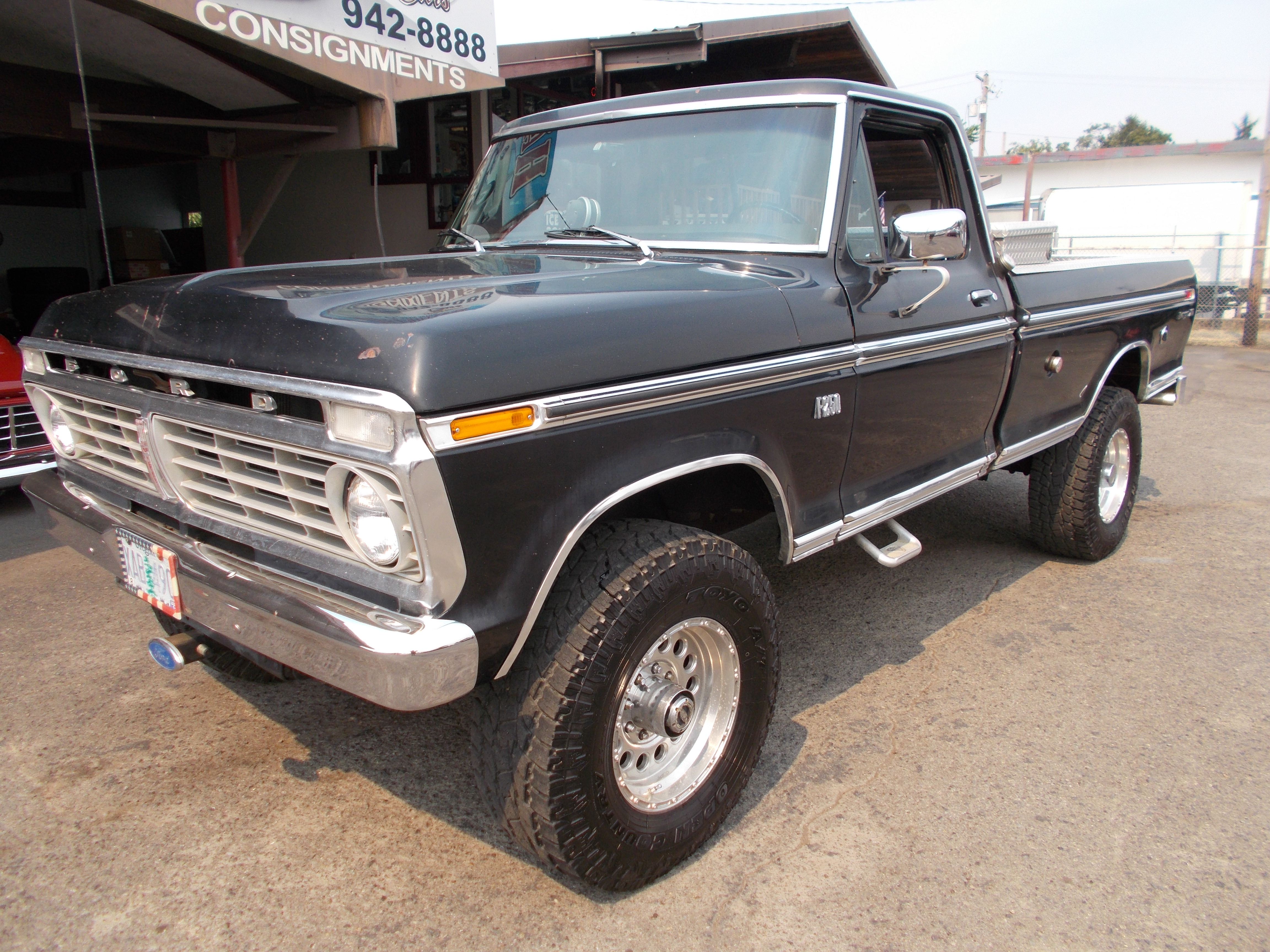 1973 Ford F-250 Ranger XLT 4x4 High Boy. 360 V-8, Auto trans. PS, PB. Good straight and solid original example of these old trucks. No rust problems. Miles are suppose to be correct at 121,000. Body has a dent at rear of drivers bed side. Paint is above average for being original. Stainless all in above average condition. Interior is good condition, One crack on center of dash pad and drivers side of seat is torn. Nice tires and wheels. Runs out good. # B-1871 $20,900 SOLD