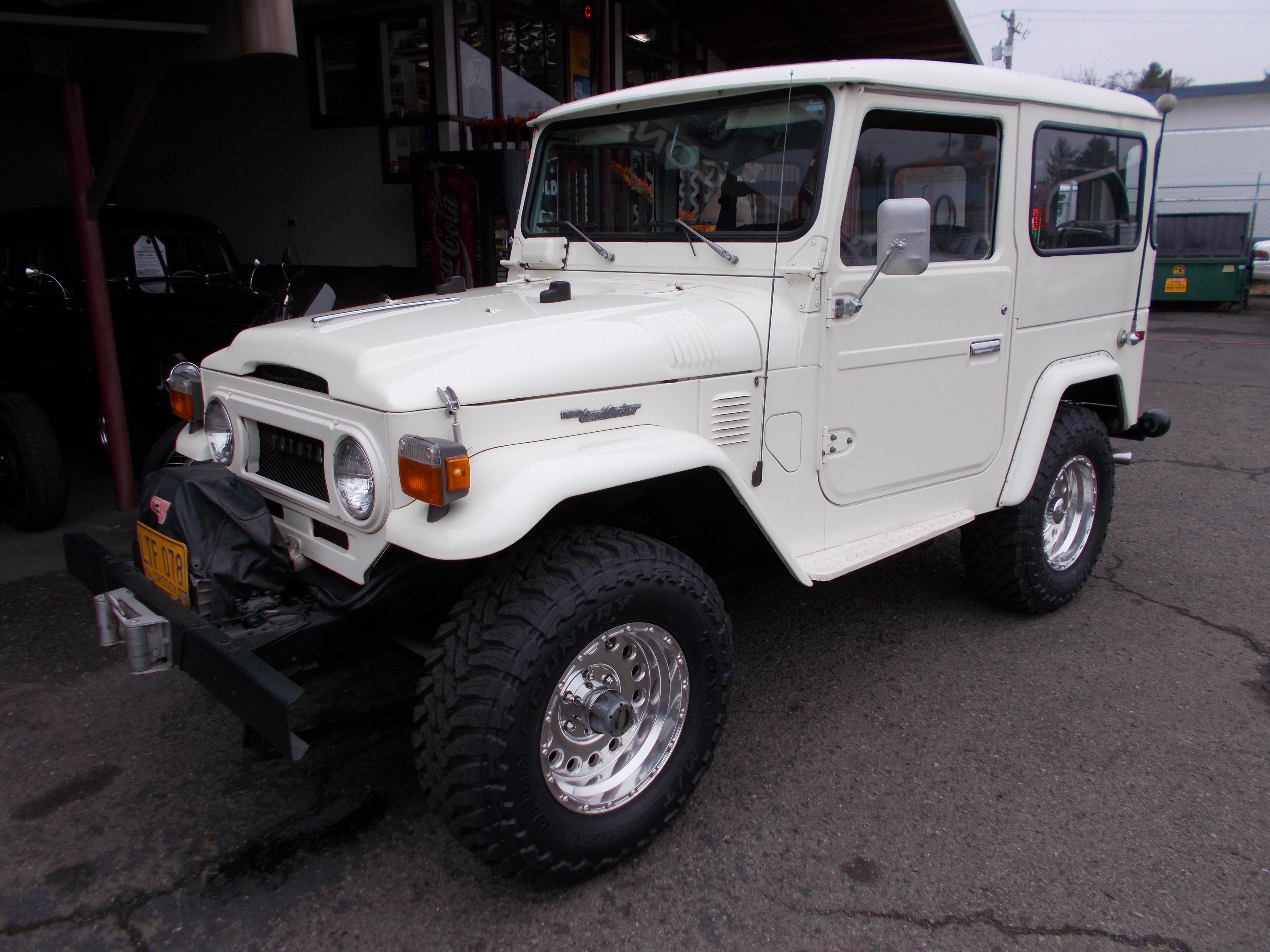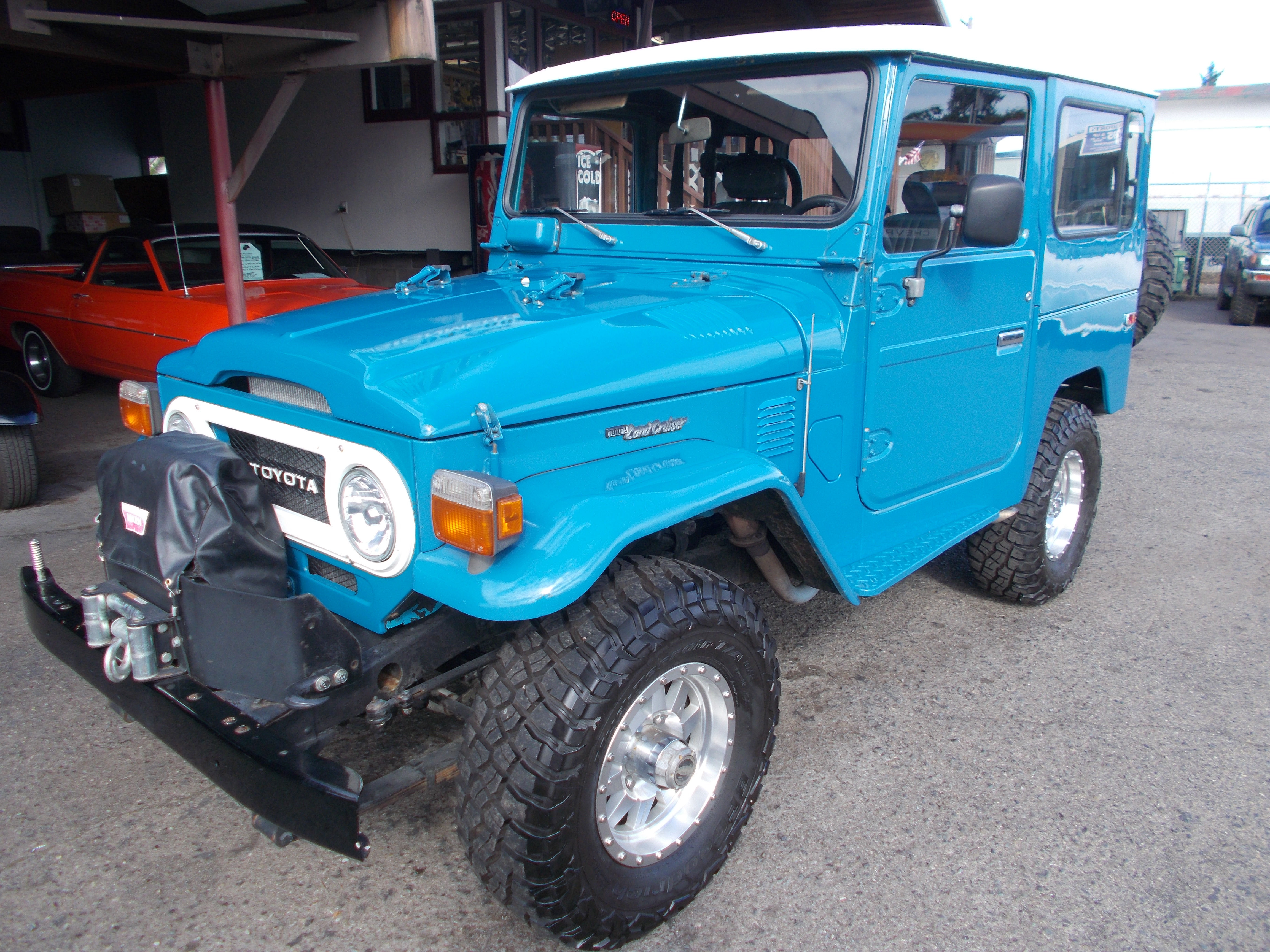 1977 Toyota Land Cruiser FJ40. 350 V-8, 4spd. trans. original running gear other then Motor. Electronic power steering added. Just had all new bearing kits put in transmission and rear end - $3,000 in receipts. Very straight and solid body with excellent repaint. Interior paint and dash original. Line-x style paint on floor pans. Winch, New tires and wheels. Motor rebuilt with not many miles but do not have receipts. Runs and drives great. # B-1837 $44,500 NOW! $33,900