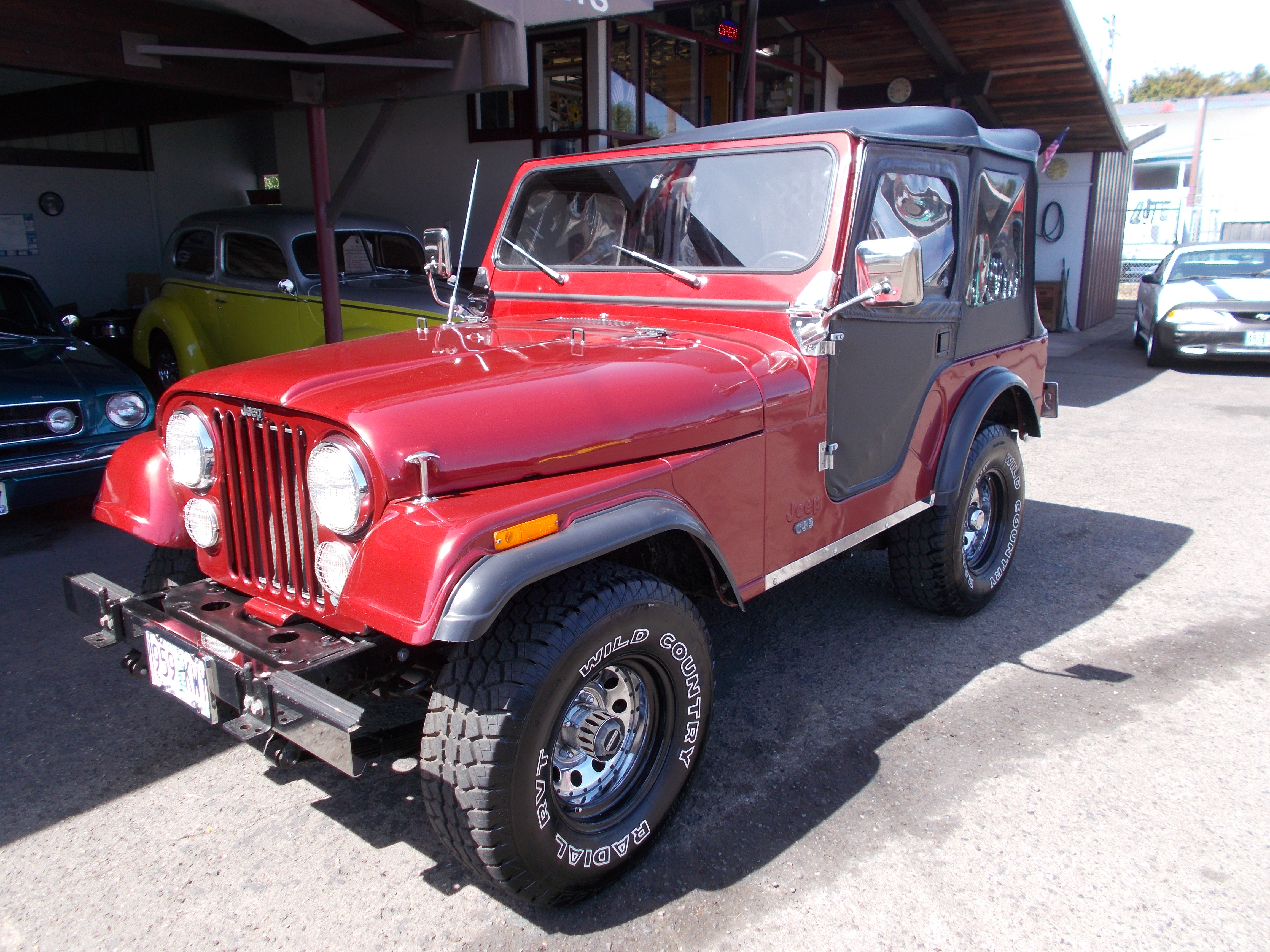 1973 Jeep CJ5. 350 V-8, M21 4spd trans. Tub is still original paint, fenders and hood repainted w/new decals, No rust problems. Original miles on jeep where 22,780 when speedometer cluster was replaced. (have orig cluster) New cluster shows 1,992 miles and those miles are correct with new motor, rear ends gone thru, drive shafts, transfer case, transmission, lift/springs, Bigger radiator, Dual batteries, after market gauges, after market seats, Warn hubs, 8000lb Warn winch, 33x12:50 15" BFG MT tires, Front sway bar w/pull pins, Full roll cage w/bikini top, also full soft top and doors. Motor has many performance parts and sounds radical but runs and drive smooth. Much more not listed in add. Have a folder of papers on jeep as seen in pictures. Very well built Jeep ! # B-1845 $21,500 NOW! $17,900 SOLD!