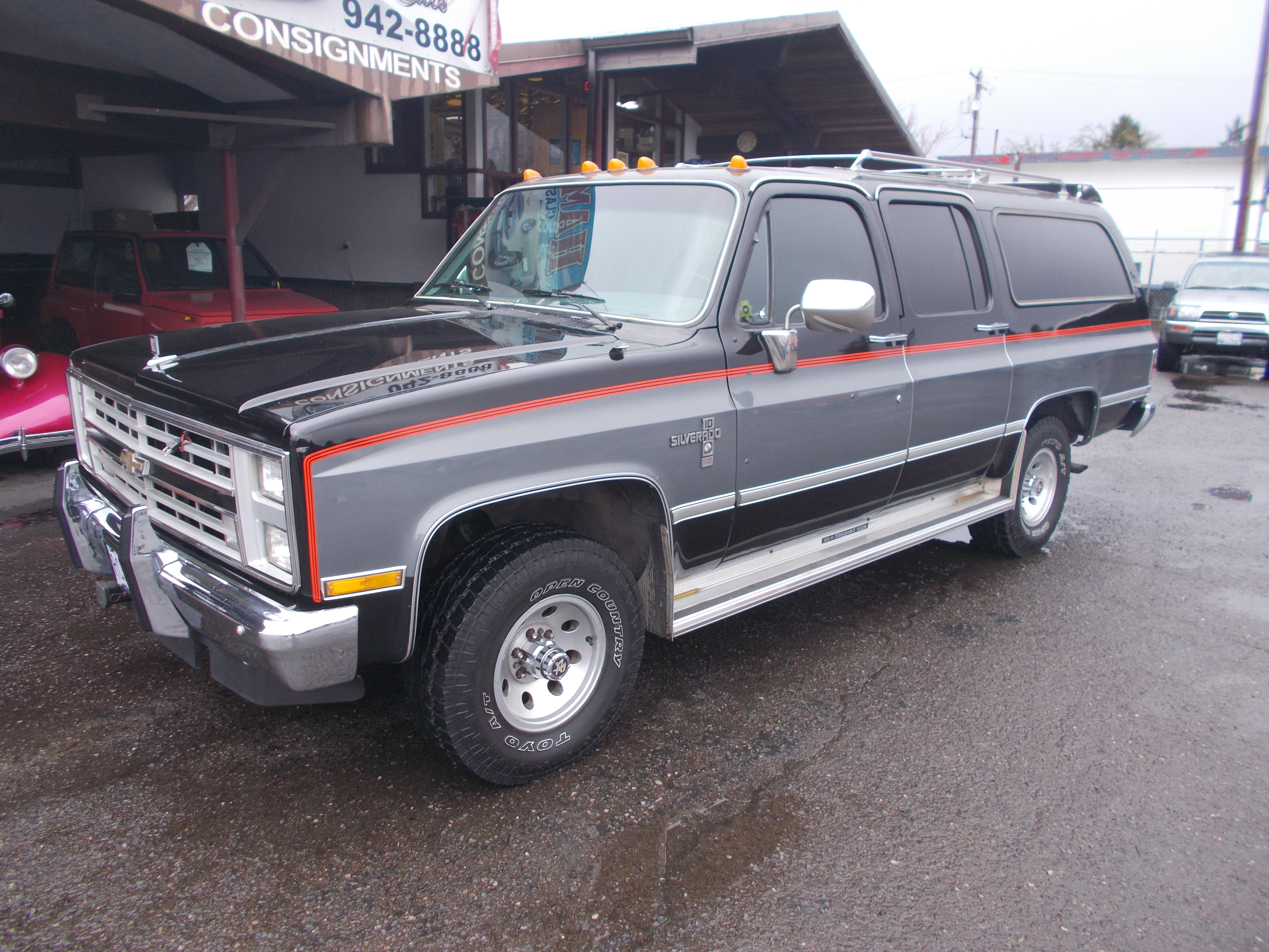 1986 Chevy K-10, Suburban Silverado 4x4. 6.2L Diesel, Auto trans. This is a 1-owner with all records and kept in garage since new. Body and original paint excellent with just a couple door dings. No rust problems. The original gray cloth interior is near perfect. A/C and all power options work great. Tires like new. After the warranty was up all Diesel work done at Oregon Fuel Injection. 206,777 miles on rig but looks and Runs like it has under 50,000 miles. Too much too list. call if interested in one of the best examples of and original 1986 Suburban you will find ! # B-1878 $22,500 NOW! $13,900 SOLD!
