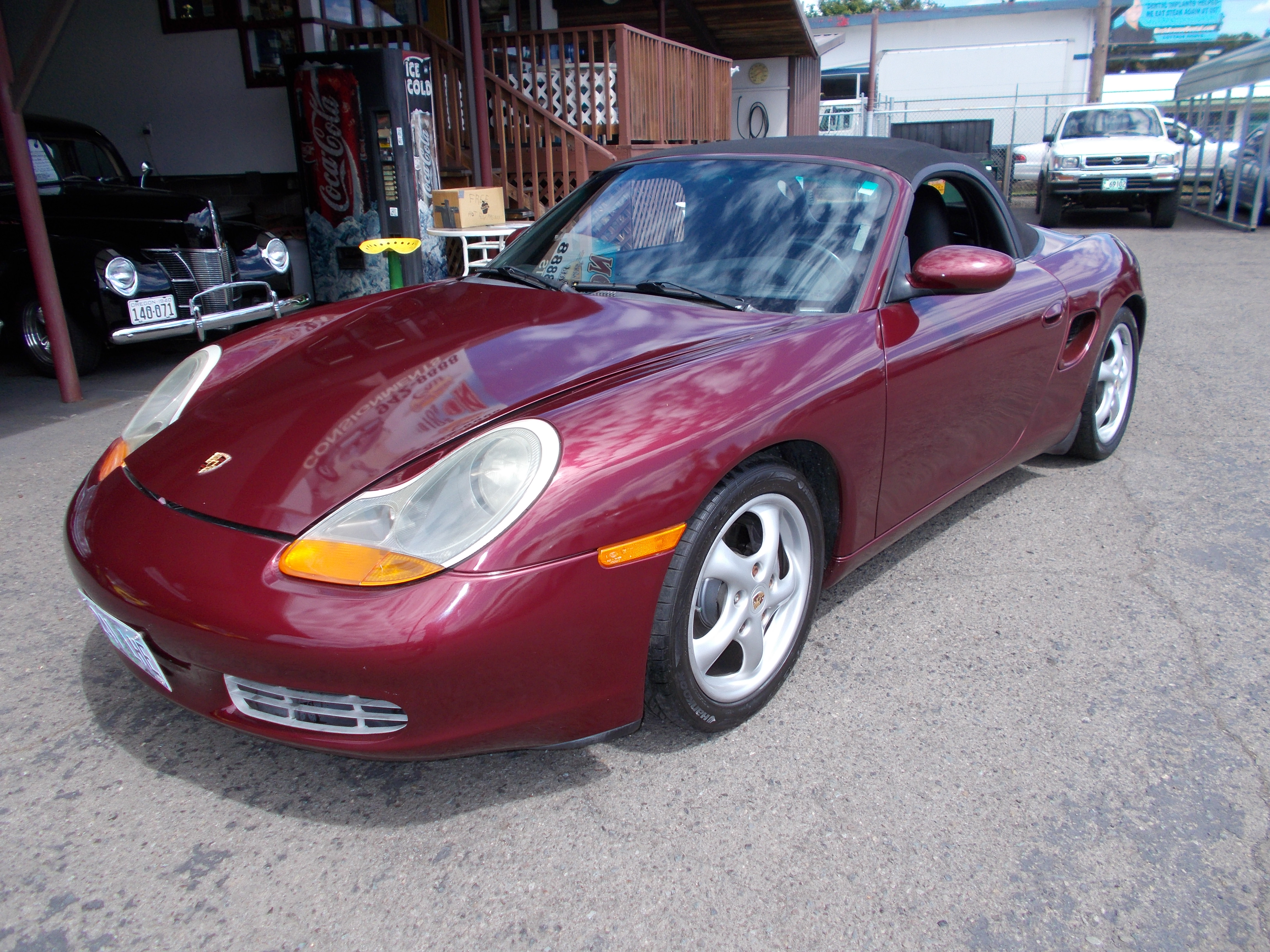 1999 Porsche boxster. 2.5L V-6, 5spd. manual. 116,194 miles. Nice clean car. Paint, body and top all in great condition. Dual power leather seats, A/C. Interior is nice, but back of drivers seat cover is loose and coming apart. Like new tire. Runs and drives excellent. # A-2233 $8,450