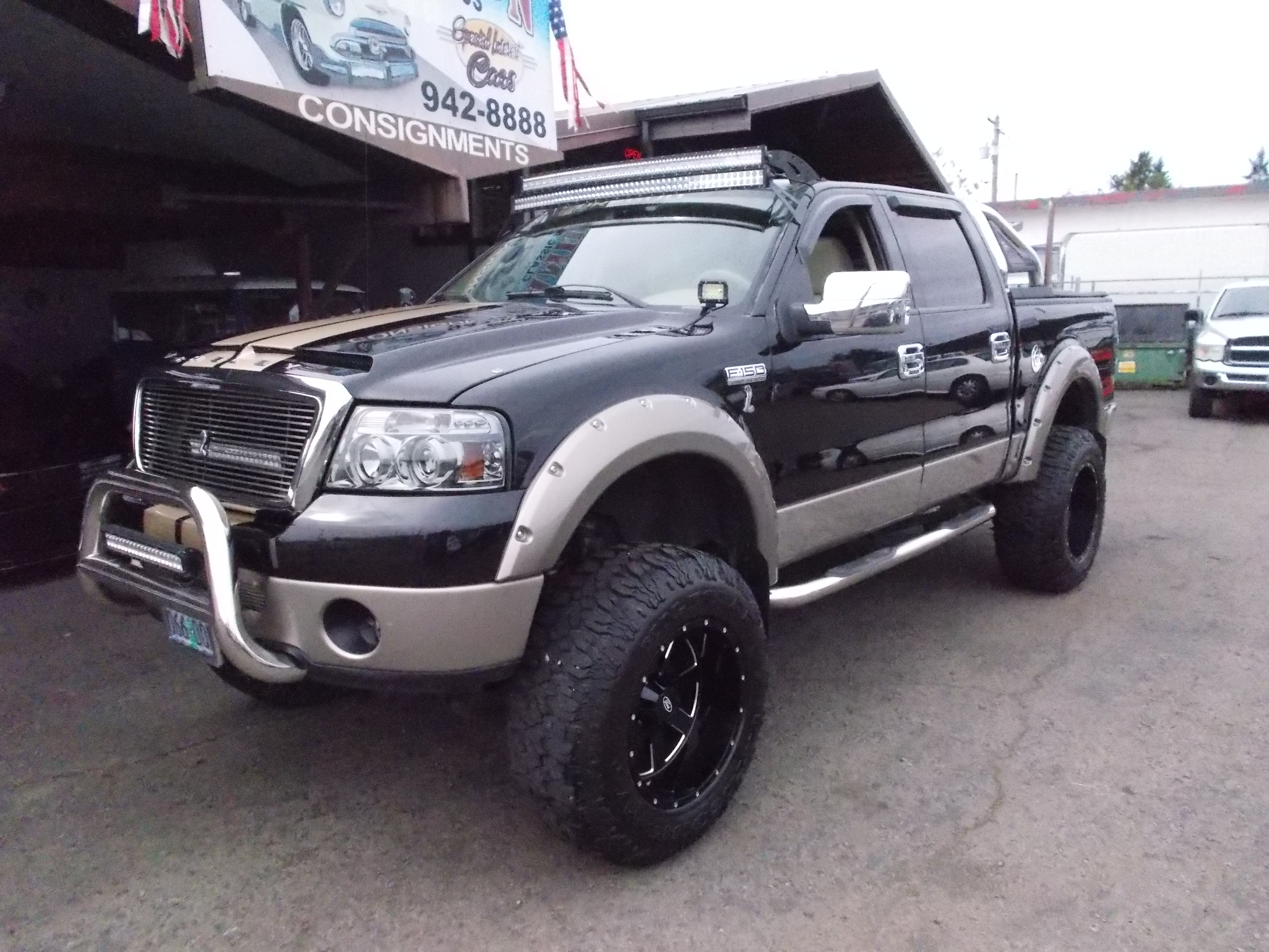 2004 Ford F-150 Lariat Crew. 5.4L, Auto. Shelby Tribute. 155,892 miles. Loaded w/options. Leather, power seats, sun roof, hard bed cover, tow hitch with air bags ect. See list of over $10,000 in extra's with the pictures. Condition of this truck is very good inside and out, some wear on bottoms of front seats (not bad) but owner has new cover that could go with truck. # B-1845 $13,500 SOLD!