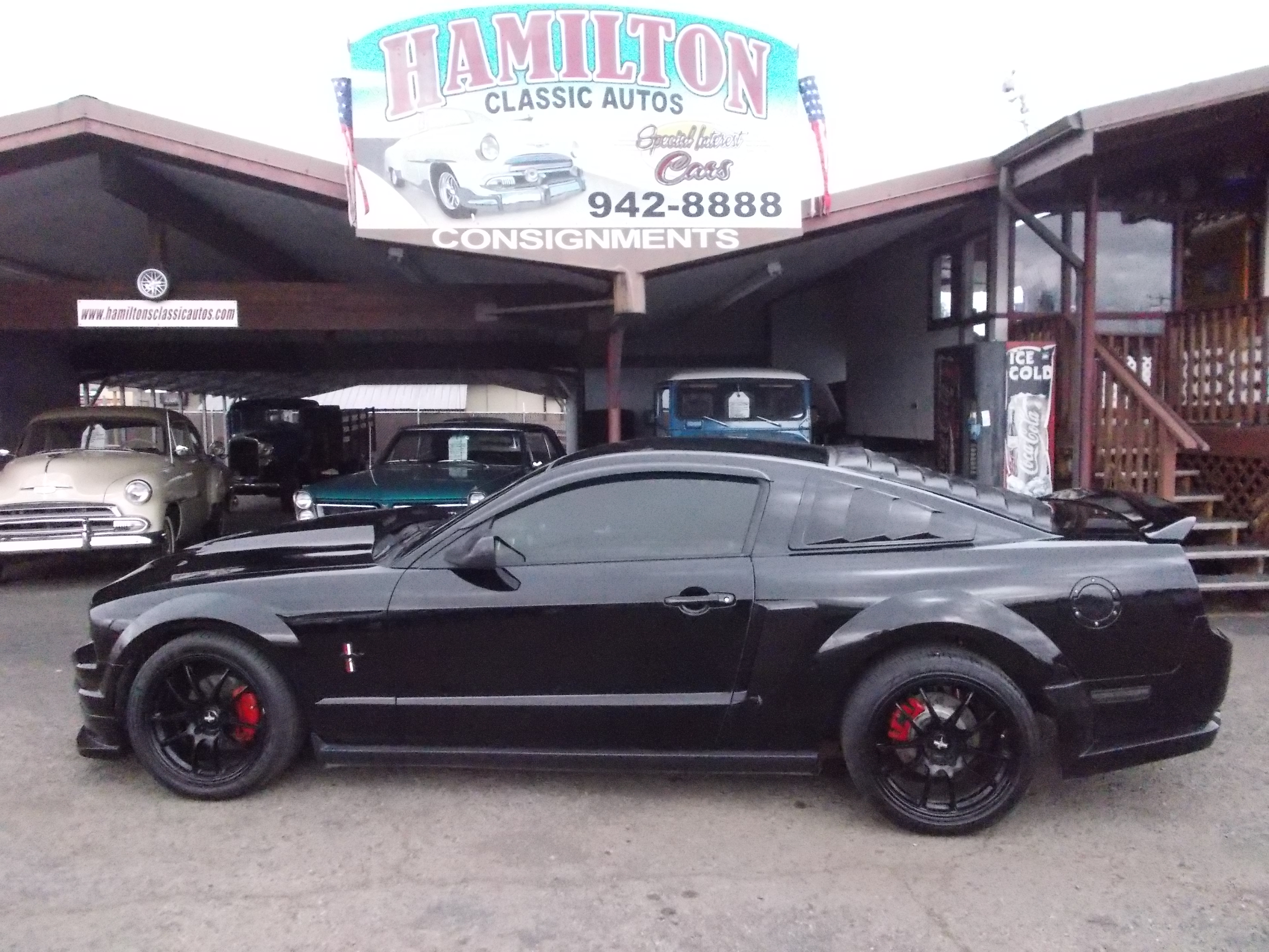 2006 Ford Mustang Premium. 4.0L V-6, auto trans. Many performance items added - Cool air intake, Headers w/new dual exhaust and cats, Performance plugs and coil packs, Slotted rotors w/new brakes, Lowering coil springs, like new tires, Fiber glass hood. Car runs strong and handles great. Leather interior nice with no tears. Body straight and paint good with some scratches and chips. 228,331 miles. Runs and drives excellent! # A-2227 $5,950 SOLD!